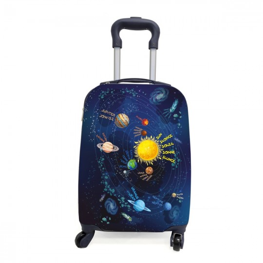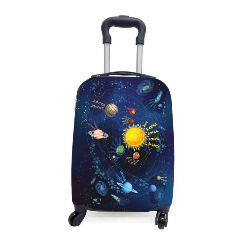 Urocza, pojemna walizka na kółkach z motywem kosmosu, która z pewnością przypadnie do gustu każdemu małemu podróżnikowi. Idealna na wycieczki czy wyjazdy urlopowe.
