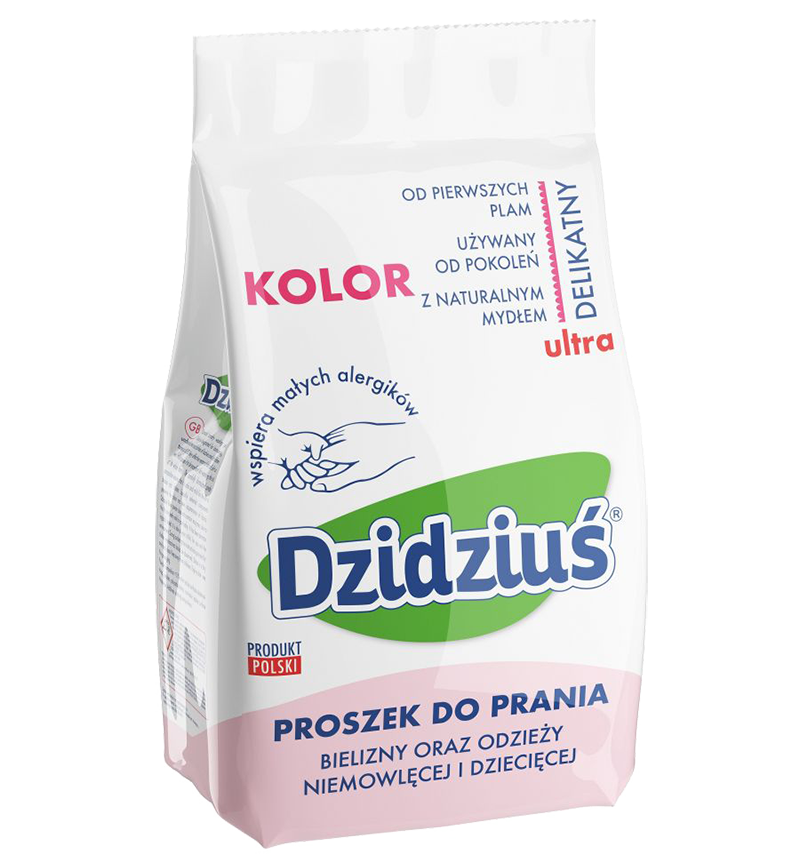 Specjalistyczny proszek Dzidziuś Kolor przeznaczony jest do prania kolorowej bielizny oraz odzieży niemowlęcej i dziecięcej w temp. do 60°C. Skutecznie usuwa wszelkie zabrudzenia oraz bardzo dobrze wypłukuje się, dzięki czemu jest również polecany do pielęgnacji ubrań całej rodziny. Starannie opracowana formuła proszku sprawia, że Dzidziuś jest bezpieczny i łagodny dla delikatnej skóry niemowląt i dzieci. Specjalnie dobrane składniki zachowują kolor i nowy wygląd tkanin. Zawarte w proszku mydło efektywnie wspomaga usuwanie plam oraz nadaje tkaninom miękkość. Proszek Dzidziuś nie posiada enzymów, dzięki czemu jest w pełni bezpieczny dla Twojego dziecka.