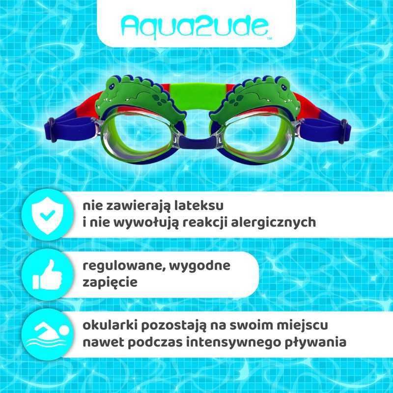 Odkryj fascynujący świat wodnych przygód z okularami do pływania Aqua2ude! Innowacyjny design i bezkompromisowe bezpieczeństwo są tutaj priorytetem. Dzięki zaawansowanej powłoce Anti-fog widoczność podczas nurkowania jest niezrównana, a filtr przeciwsłoneczny skutecznie chroni oczy przed promieniami UV. Niech Twoje dzieci zakochają się nie tylko w oryginalnym wzorze aligatora, ale także w doskonałym komforcie noszenia. Aqua2ude to marka, która nie tylko łączy funkcjonalność z stylem, lecz także czyni każdą pływacką przygodę jeszcze bardziej ekscytującą.