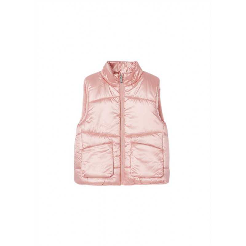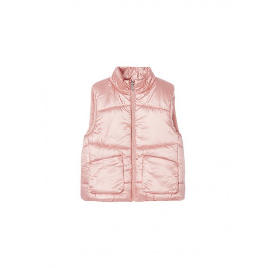 Dziewczęcy bezrękawnik w kolorze brudnego różu, lekko połyskujący, bardzo ciepły. Zapięcie na zamek ,z przodu naszyte dwie kieszenie. Ubranko można również nosić na drugiej stronie i mamy kamizelkę z futerka ,bardzo miłą w dotyku i cieplutką.