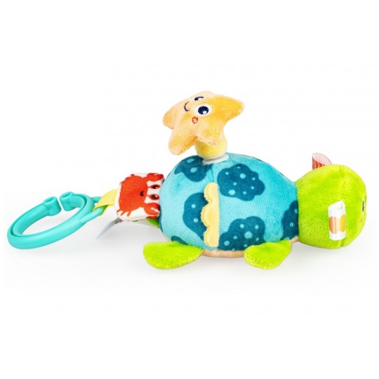 Ten mały wesołek zapewni najmłodszym radosną zabawę, dzwoniąc przy tym uroczo! Staś posiada na grzbiecie uśmiechniętą rozgwiazdę, która zakręci się, gdy tylko pociągniesz za kółko z krabikiem przy zawieszce lub za, przyczepionego wcześniej, żółwika. Zwierzak podciągnie się z powrotem do góry, zabawnie przy tym wibrując. Zabawka wykonana została z materiałów o zróżnicowanych fakturach, co wpływa pozytywnie na rozwój zdolności poznawczych malucha. Produkt przeznaczony jest dla dzieci od dnia narodzin.
