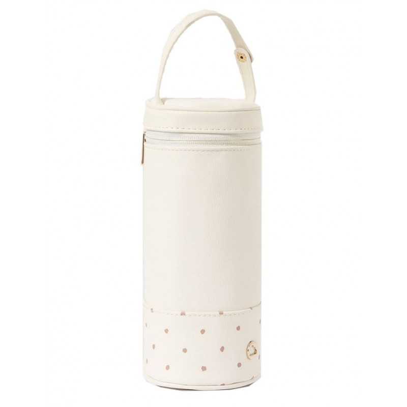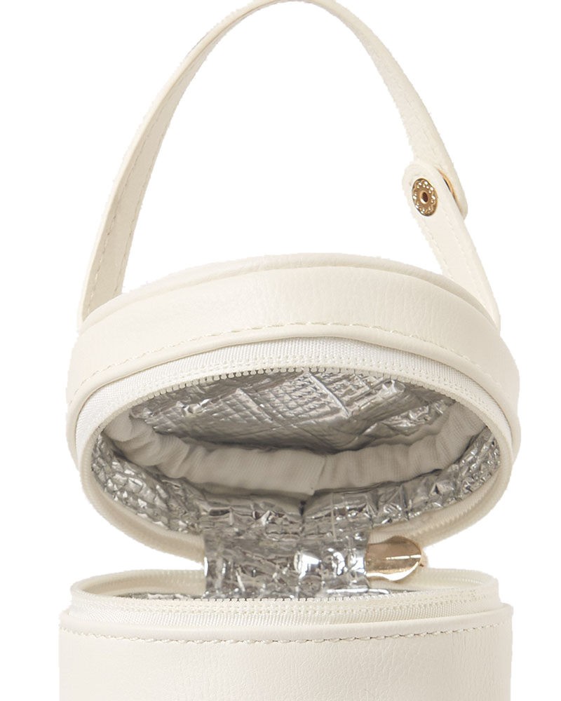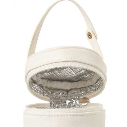 Kompaktowe etui na butelki. Zapięcie na suwak. Nowoczesny materiał zewnętrzny ze skóry ekologicznej. Dodatek ten został zaprojektowany jako pasujący do najnowszych kolekcji toreb i akcesoriów. Wymiary: 22 x 9 x 9 cm. Etui przedłuża świeżość napojów i na krótki czas zachowuje ich temperaturę.