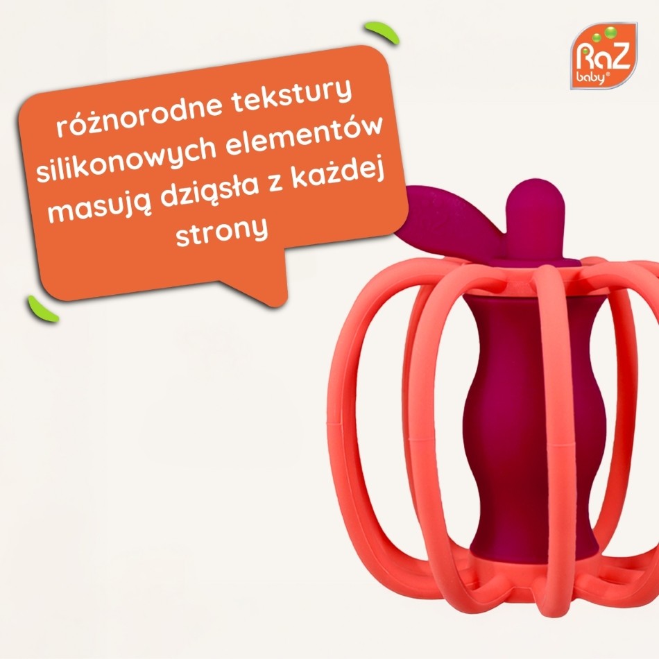 Szukasz produktu, który pomoże Twojemu dziecku przetrwać ząbkowanie i jednocześnie zapewni mu bezpieczną rozrywkę? Raz-Apple łączy funkcję gryzaka i grzechotki w uroczej formie jabłka, która przyciąga uwagę malucha i wspiera jego rozwój sensoryczny. Wykonany z elastycznego silikonu spożywczego, ten innowacyjny gadżet przynosi ulgę w bólu dziąseł, a przy tym jest łatwy do trzymania i całkowicie bezpieczny.