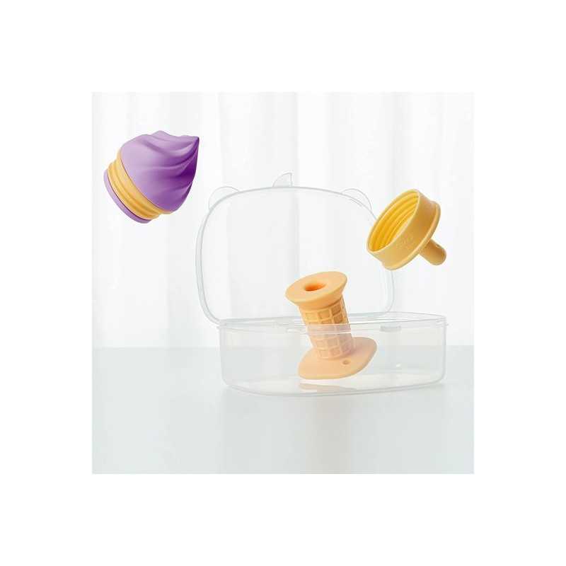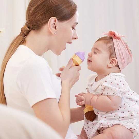 Gryzak chłodzący Smily Mia w kształcie smakowitego loda został stworzony po to, by jeszcze lepiej łagodzić ból i dyskomfort związany z ząbkowaniem. Wystarczy go rozkręcić, wlać wodę do zbiorniczka, umieścić zbiorniczek w zamrażarce, aż do momentu zamarznięcia, następnie wyjąć go, skręcić gryzak i podać dziecku. Maluch nie odmówi sobie pysznych lodów, które dodatkowo schłodzą jego dziąsła, przynosząc ulgę w ząbkowaniu.  Kojąca zabawka dla dzieci może być używana w domu i w podróży. Do zestawu dołączone jest bowiem przezroczyste etui, do którego możemy zapakować gryzak chłodzący Smily Mia, gdy wychodzimy na spacer lub wyjeżdżamy na wakacje.  Gryzak chłodzący Smily Mia przeznaczony jest dla dzieci w wieku od 3 do 18 miesięcy i spełnia on międzynarodowe normy bezpieczeństwa ASTM-F963 przewidziane dla zabawek dedykowanych dla dzieci.