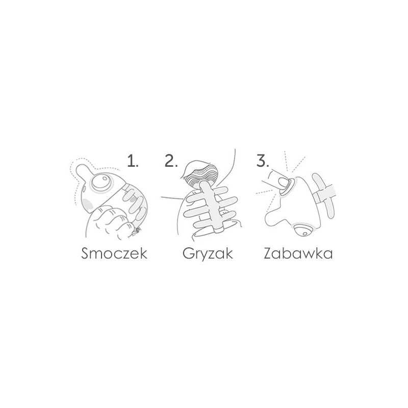 Oryginalny, zabawny i funkcjonalny silikonowy gryzak Rybka pełniący 3 różne funkcje: smoczka, gryzaka i zabawki sensorycznej. Idealny towarzysz dziecka podczas ząbkowania!