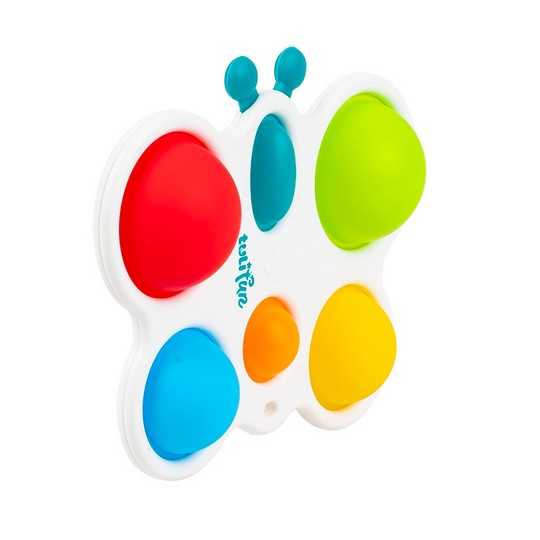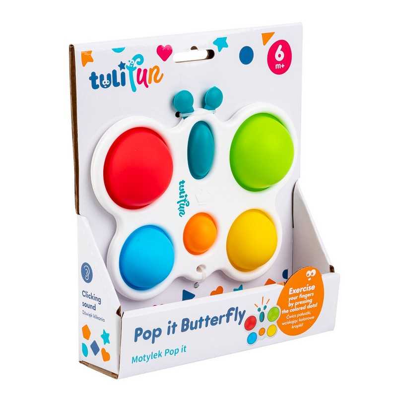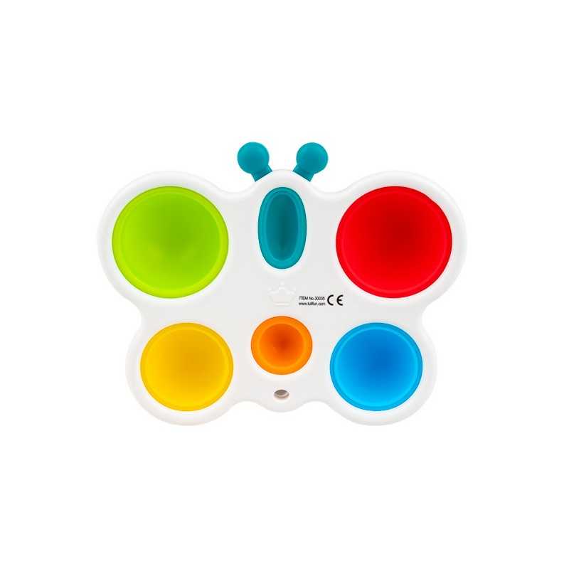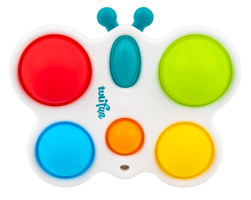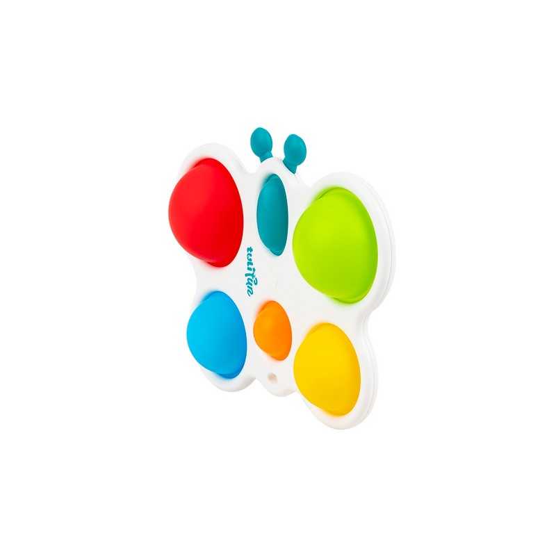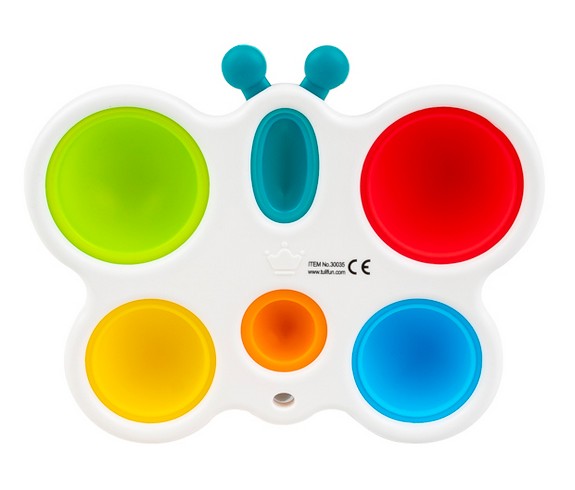 Wesoły motylek odpręży malucha zabawą w kolorowe klikanie! Ta zajmująca czynność stanowi świetną rozrywkę, która dodatkowo pomaga ćwiczyć paluszki. Motylek posiada jedno owalne i pięć okrągłych, kolorowych pól. Zadaniem najmłodszych jest przepchnąć wszystkie wypukłe elementy na drugą stronę zabawki. Czynności tej towarzyszyć będzie zabawny odgłos klikania. Po uporaniu się z zadaniem, motylka można odwrócić na drugą stronę, aby rozpocząć zabawę od nowa. Produkt przeznaczony jest dla dzieci od 6 miesiąca życia.
