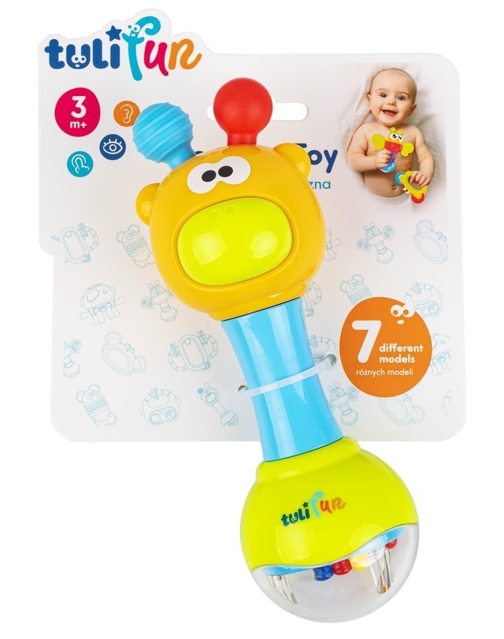 Kolorowa żyrafka zabawi maluszka zarówno w domowym zaciszu, jak i podczas podróży czy wycieczki. Niewielkich rozmiarów zabawka, posiada piszczałkę oraz grzechotkę wyposażoną w holograficzną ściankę, tworzącą ciekawy efekt wizualny. Miękkie różki żyrafki sprawdzą się świetnie w roli gryzaka. Kształt zabawki dostosowany jest do małych rączek, co ułatwi i umili najmłodszym korzystanie z niej. Produkt przeznaczony jest dla dzieci od 3 miesiąca życia.