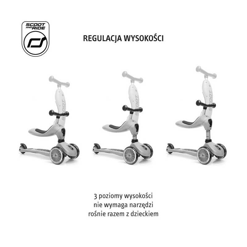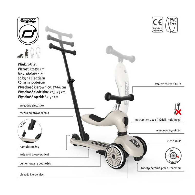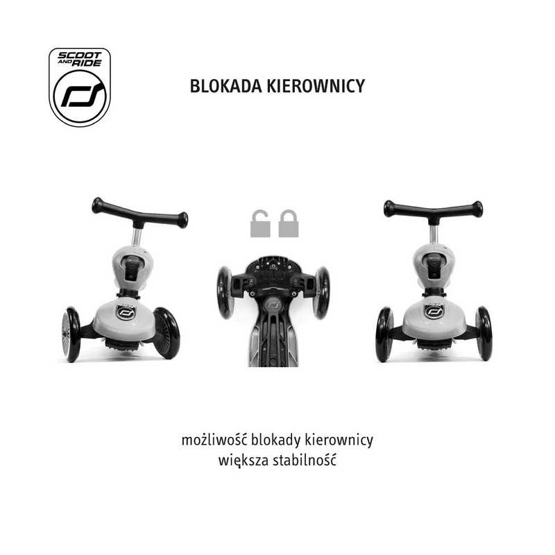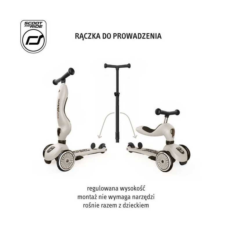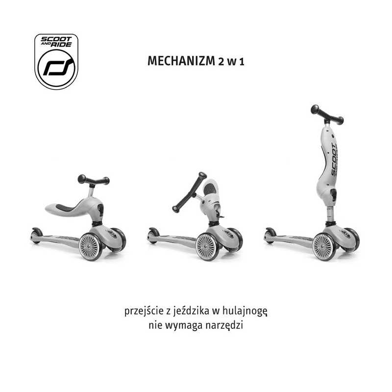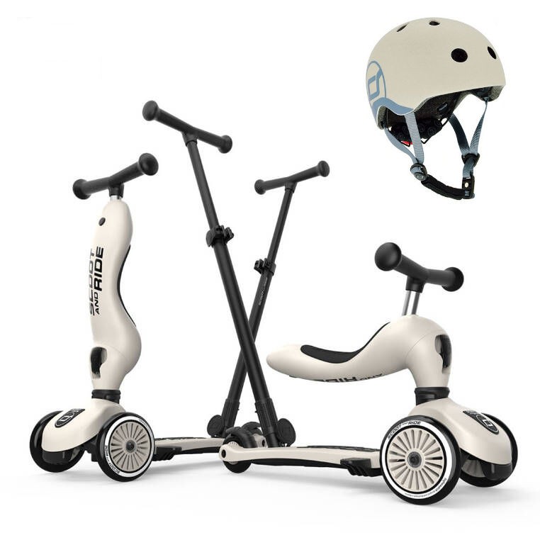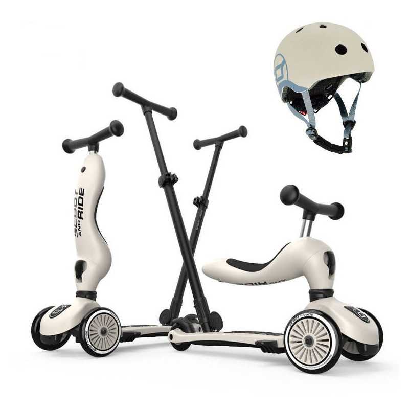 Zestaw SCOOTANDRIDE Highwaykick 1 Push and Go 2w1 Jeździk i hulajnoga 1-5 lat ASH + Kask XXS-S