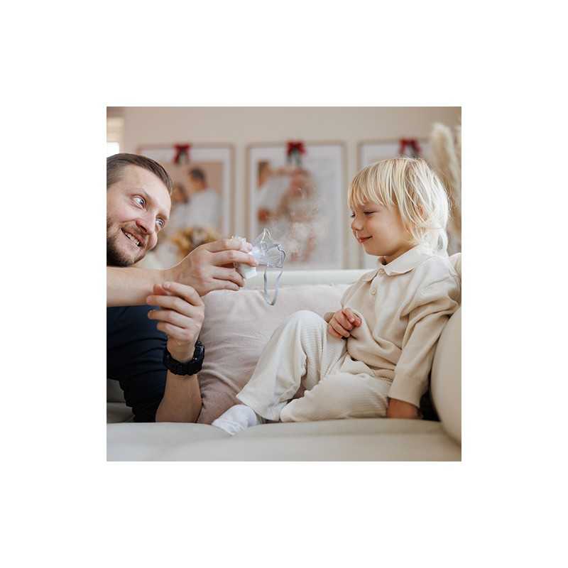 Nebulizator ultradźwiękowy NBM-11 to zaawansowane urządzenie medyczne stworzone do efektywnej inhalacji dróg oddechowych u dzieci i dorosłych. Szybko zamienia lek w mgiełkę złożoną z drobnych cząsteczek, co pozwala na jego precyzyjne podanie i w pełni skuteczne działanie. Łączy nowoczesną technologię z wyjątkową wygodą użytkowania. Mieści się w kieszeni, posiada funkcje automatycznego wyłączania i czyszczenia. Docenisz go za bezprzewodową, bardzo cichą pracę oraz lekką i kompaktową budowę. Przenośny nebulizator wykorzystasz w domu, w pracy i w podróży. To niezawodne wsparcie w codziennej trosce o drogi oddechowe. Twoje dziecko polubi go za przyjazny kształt, a Ty za komfort, bezpieczeństwo i swobodę inhalacji w każdej sytuacji.