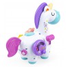 Sensoryczne stworzenie, wprost z bajkowego świata! Uroczy jednorożec kryje w sobie wiele praktycznych zadań, które pomogą maluszkowi rozwijać motorykę małą i odkrywać zależności przyczynowo – skutkowe.