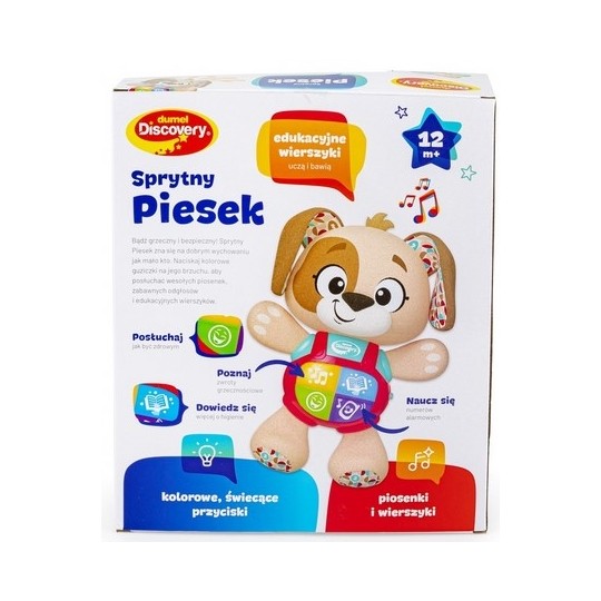 Kolorowe opakowanie sprawia, że Dumel Sprytny Piesek to idealny prezent, który wywoła uśmiech już przy pierwszym spotkaniu. Spraw, by Twój maluch odkrył radość zabawy i nauki – zamów Sprytnego Pieska już dziś!