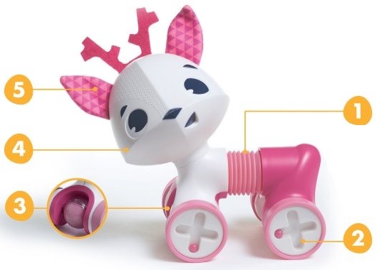 Sarenka Florence będzie towarzyszyć dziecku na ścieżce rozwoju.Starsze dzieci będą rozciągać tułów sarenki, aby zmienić sposób jej poruszania się, dzięki temu stopniowo zaczną pojmować sekwencje działań.