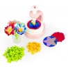 - zabawa polega na łączeniu, przy pomocy maszynki, kolorowych płatków ze środkiem i szypułką w kwiatową główkę oraz przymocowaniu do niej łodygi, w celu stworzenia kwiatka;