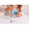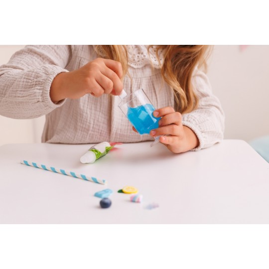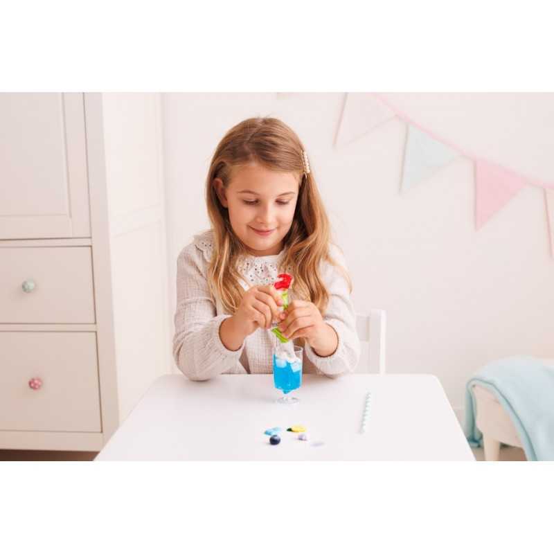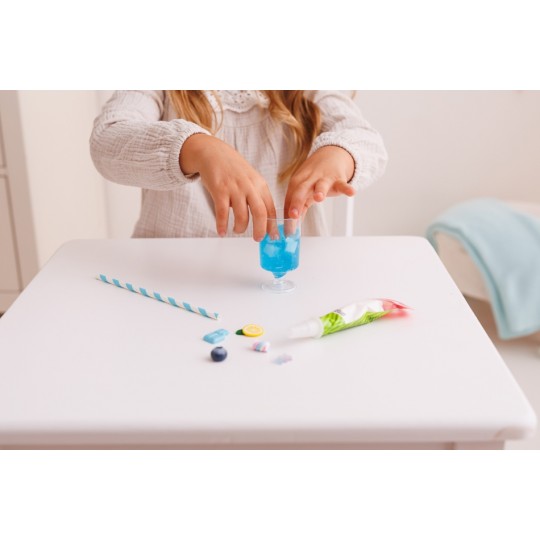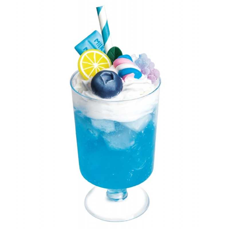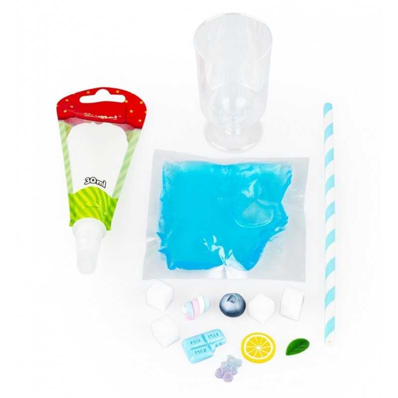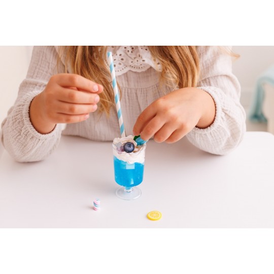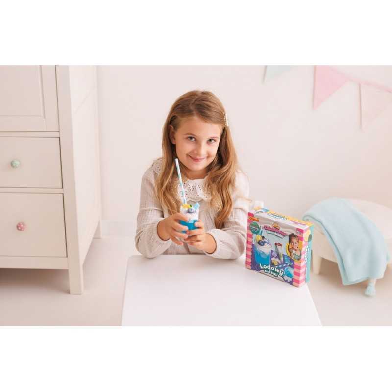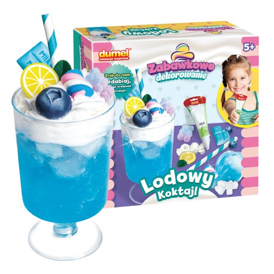 Przygotuj samodzielnie zabawkowy koktajl i udekoruj go tak, jak podpowiada ci własna fantazja! Zestaw zawiera galaretkową masę, imitującą płyn, kremową masę w tubce, plastikowy kubeczek i dodatki do ozdobienia gotowego koktajlu. Gdy skończysz dekorować, pozostaw swój zabawkowy koktajl, aby całkowicie stwardniał, najlepiej na całą dobę. Produkt przeznaczony jest dla dzieci od 5 roku życia.