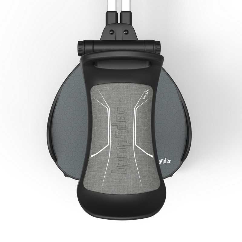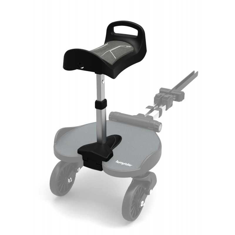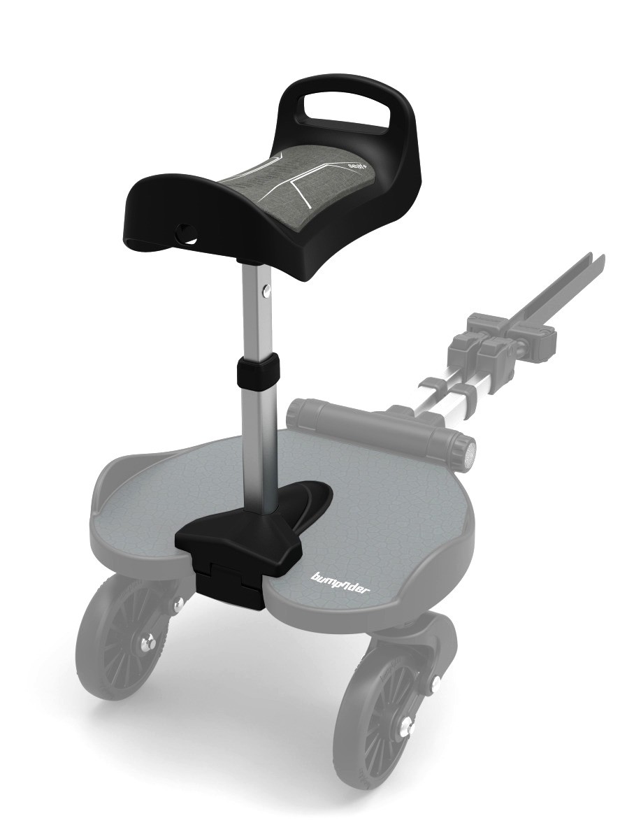 Seat+ to ergonomiczne i innowacyjne siedzisko, które w kilka sekund można zamontować lub odczepić, dając dziecku wybór: jazda na stojąco lub na siedząco. Siedzisko można ustawić przodem lub tyłem do kierunku jazdy, w zależności od preferencji dziecka lub konstrukcji wózka. Seat+ rośnie razem z dzieckiem — oferuje 3-stopniową regulację wysokości, a zintegrowany uchwyt bezpieczeństwa pomaga utrzymać prawidłową pozycję siedzącą i równowagę. Pod siedziskiem umieszczono amortyzatory, które skutecznie tłumią wstrząsy i odciążają konstrukcję wózka. Miękka, zdejmowana poduszka pokryta oddychającą tkaniną ułatwia utrzymanie czystości i zwiększa komfort podróży.