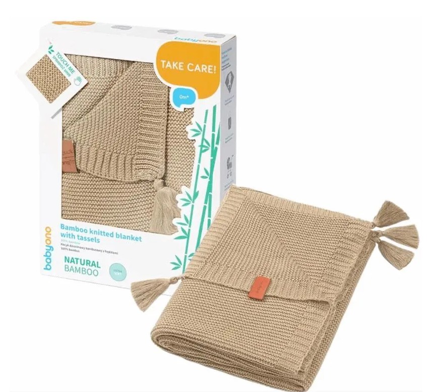 Wykonane z włókien bambusa materiały są wyjątkowo miękkie i delikatne, często porównywalne z jedwabiem. Bambus jest rośliną cenioną za swoje właściwości zdrowotne i kojące dla skóry. Jest odnawialnym surowcem przyjaznym dla środowiska. Rośnie bardzo szybko, nawet do 1 m dziennie, a do jego uprawy nie używa się pestycydów. Bambus ma właściwości antybakteryjne, dzięki czemu niweluje brzydkie zapachy. Delikatne włókna bambusowe wymagają odpowiedniej temperatury podczas prania. Dzięki temu zostanie zachowana miękka struktura kocyka.Kocyk BAMBUSOWY Z FRĘDZLAMI, naturalny, super miękki i z delikatnym splotem, jest niezbędnym elementem wyprawki – niezastąpiony zarówno w okresie noworodkowym, jak i niemowlęcym. Kocyk wykonany jest w 100% z włókien bambusa. Może być wykorzystywany już od pierwszych dni życia. Zapewnia najwyższy komfort odpoczynku i doskonale reguluje temperaturę ciała podczas snu, gdyż latem nieco chłodzi a zimą lekko grzeje. Kocyk stanowi doskonały dodatek do dziecięcego pokoju lub wózka.