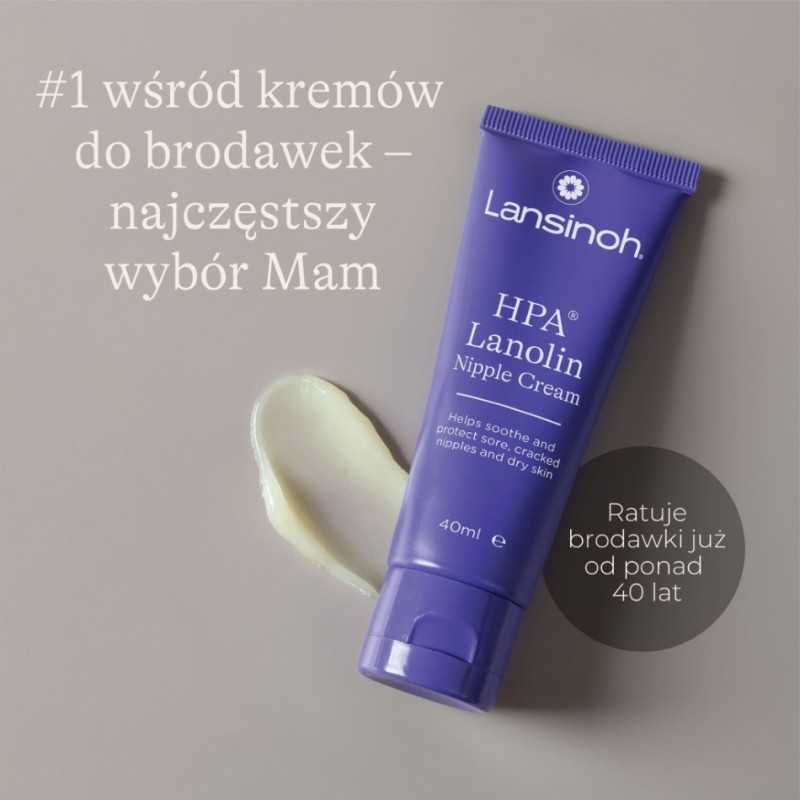 100 % czystej lanoliny łagodzącej podrażnienia i zapobiegającej pękaniu i podrażnieniu brodawek piersi. Lanolina Lansinoh HPA jest w 100% hypoalergiczna lanolina uzyskana przy udziale unikalnego procesu rafinacji i tym samym najbezpieczniejszym i najczystszym preparatem na brodawki piersi dostępnym na rynku. Lanolina Lansinoh HPA® jest jedynym produktem lanolinowym, który uzyskał Pieczęć Uznania Brytyjskiego Towarzystwa Alergologicznego. Pomaga chronić i leczyć podrażnienia brodawek piersi. Nie musi być usuwana przed rozpoczęciem karmienia. Jest bezbarwna, bazsmakowa i bezzapachowa. Nie zawiera konserwantów, przeciwutleniaczy i innych dodatków