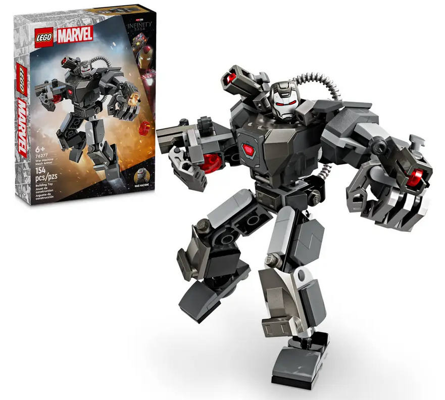 Zestaw LEGO Marvel Mechaniczna zbroja War Machine (76277) zawiera w pełni ruchomego mecha dla chłopców i dziewczynek w wieku od sześciu lat. Mech ma także miotacze klocków i minifigurkę pilota. Korpus mecha otwiera się, ukazując kokpit dla minifigurki pilota, War Machine. W zestawie są trzy miotacze klocków - jeden na ramieniu mecha i dwa na rękach - a z tyłu mecha znajduje się schowek na dodatkową amunicję. Ta figurka Marvela ma ruchome ramiona, nogi i ręce, dzięki czemu fani War Machine i mechów mogą bez przerwy odgrywać ekscytujące bitwy. Dzieci mogą jeszcze bardziej poszerzyć możliwości zabawy, łącząc tę zabawkę z innymi mechami LEGO Marvel z tej serii (sprzedawanymi osobno). Dodatkową cyfrową zabawę zapewnia intuicyjna aplikacja LEGO Builder, w której można powiększać i obracać modele w 3D oraz śledzić swoje postępy.