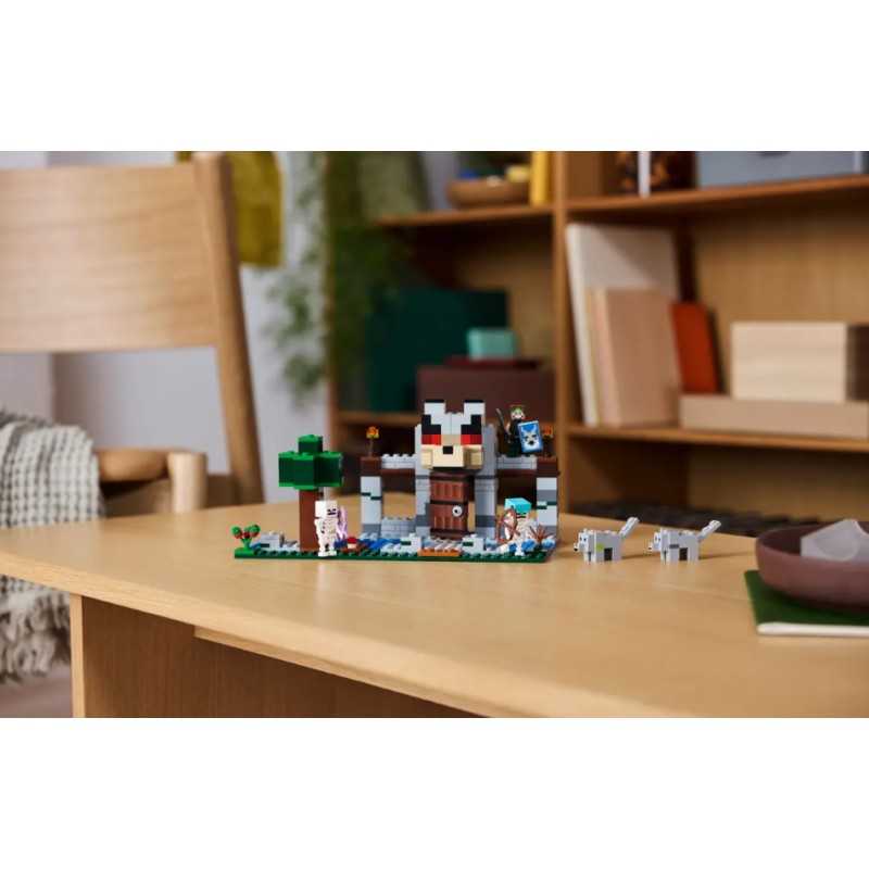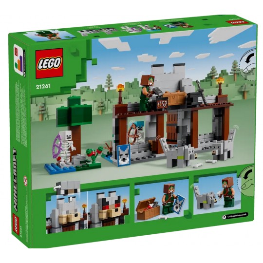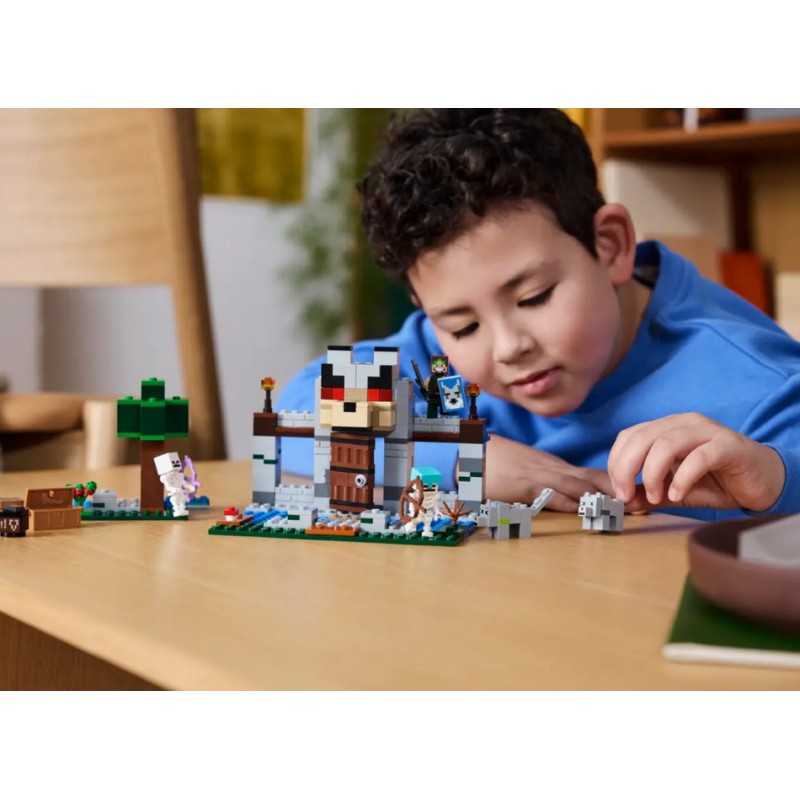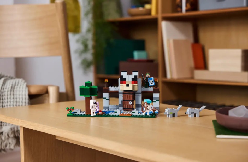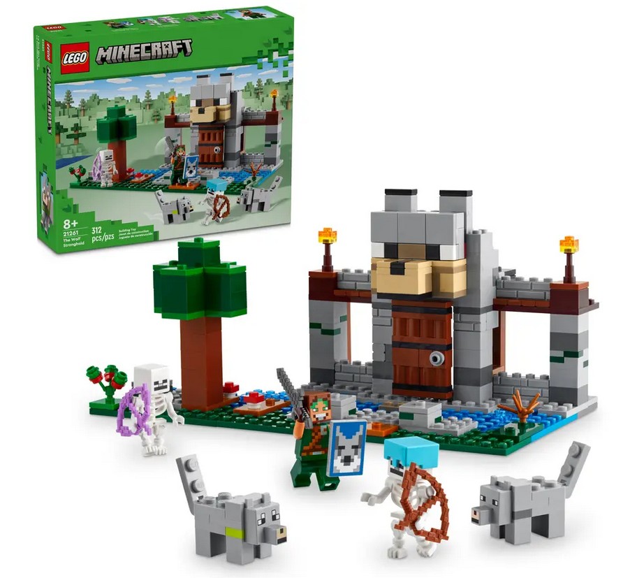 Dzieci, które uwielbiają przygody, twierdze i postacie z gry Minecraft będą zachwycone zestawem LEGO Minecraft® Wilcza twierdza (21261). Ten wilczy prezent dla ośmioletnich i starszych fanów Minecrafta zapewni im ciekawą zabawę w odkrywanie i ekscytujące bitwy. Dzieci zbudują bazę tresera wilków z wielką wilczą głową nad wejściem, a następnie zmienią wyraz pyska z przyjaznego na wściekły. W środku znajduje się stół rzemieślniczy, piec, kowadło i pierwszy w historii zestawów LEGO Minecraft stół kowalski. W skrzyni kryje się sztabka netherytu, z której można zrobić miecz, słodkie jagody i kości do poskramiania wilków. Na zewnątrz bazy jest las z drzewem, skałą, grzybem i krzakiem jagód. To tam właśnie przechadzają się dwa szkielety z gryMinecraft: jeden z zaczarowanym łukiem, a drugi z łukiem, strzałą i diamentowym hełmem. Zabawę urozmaici także intuicyjna aplikacja LEGO Builder.