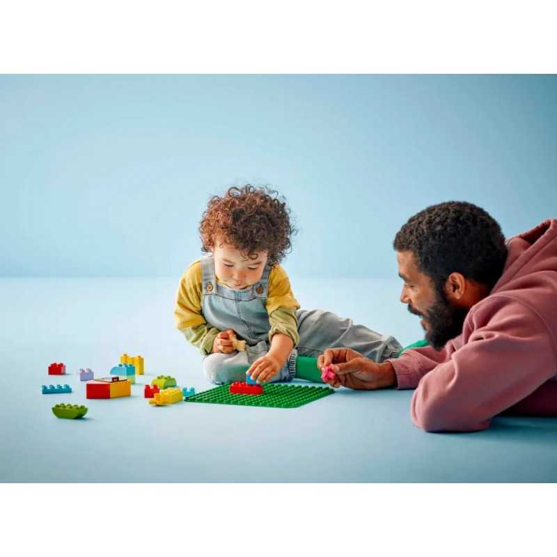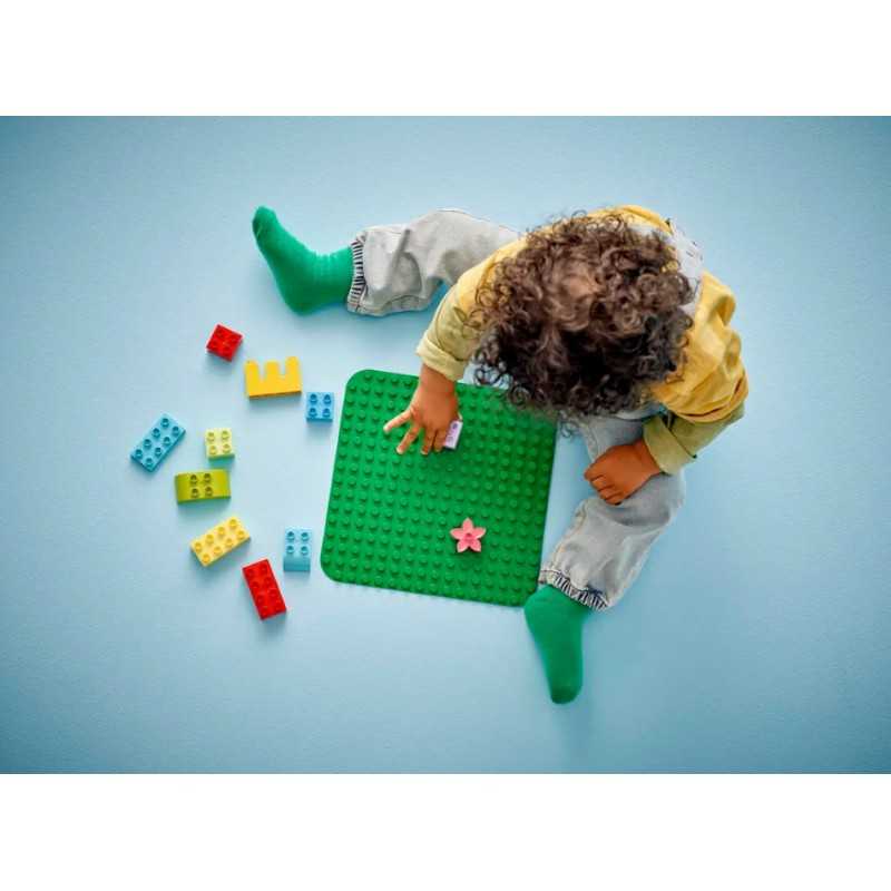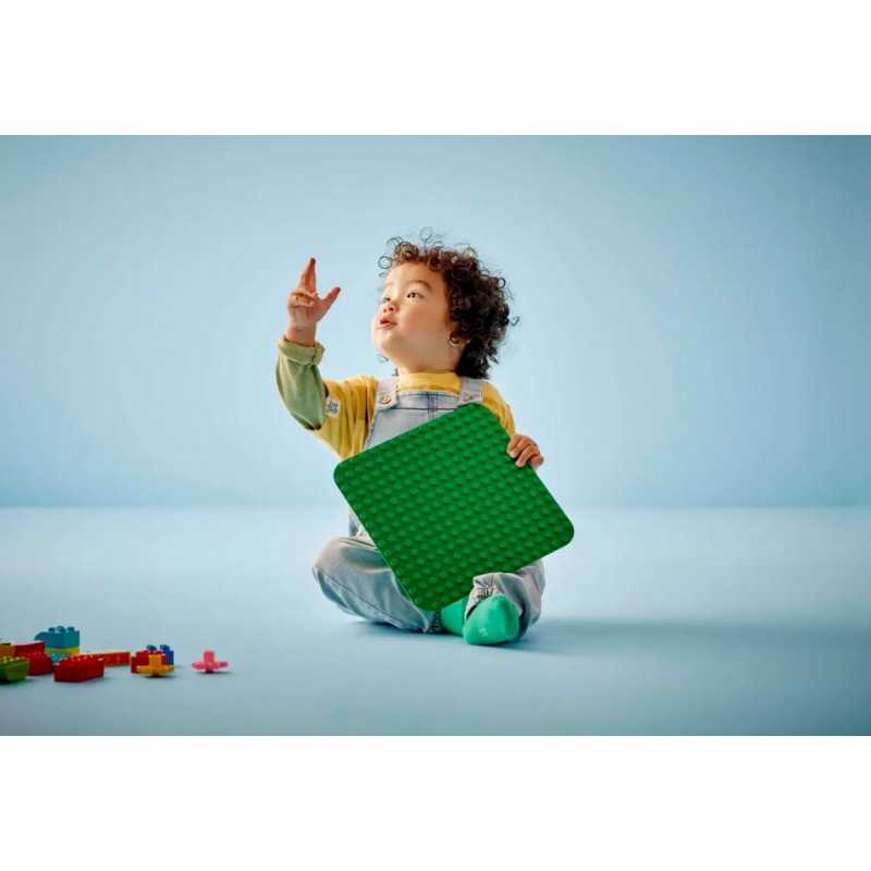 LEGO DUPLO Zielona płytka konstrukcyjna (10460) to idealna podstawa dla dzieci w wieku od 18 miesięcy, które mogą na niej budować, bawić się swoimi wspaniałymi modelami i pokazywać je innym. Zielona płytka konstrukcyjna w rozmiarze 16x16 wypustki jest kwadratem o boku 25 cm. To doskonała propozycja dla początkujących budowniczych. Płytka bez trudu utrzyma klocki pod każdym kątem (nawet do góry nogami!). Taka zabawka otwiera przed dziećmi mnóstwo możliwości twórczej zabawy — może stać się trawiastym ogrodem lub egzotyczną dżunglą, stromym górskim zboczem lub wspaniałą latającą machiną. Po zakończonym budowaniu solidna płytka pozwala dzieciom przenieść i ustawić na półce wszystkie kreatywne modele i nie martwić się, że się rozpadną. Dzięki ciekawym zabawkom LEGO DUPLO rodzice mogą uczestniczyć w każdym etapie rozwoju swoich maluchów i zachęcać dzieci do swobodnej zabawy, wyrażania emocji i nabierania pewności siebie.