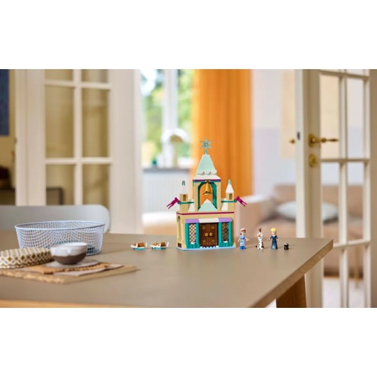Na pięciolatków i starsze dzieci czeka wspaniała zimowa przygoda z zestawem LEGO Disney Kraina lodu - Zamek w Arendelle (43265). Zawiera on zamek do zbudowania z otwieranymi drzwiami, jadalnią i sypialnią, dwie pary sanek do urządzania wyścigów oraz wiele innych ciekawych akcesoriów. Całość uzupełniają minilaleczki LEGO Disney Elzy i Anny oraz figurka bałwana Olafa. Ta wysokiej jakości zabawka jest pełna funkcji i cech, które inspirują do ciekawej zabawy i budowania. Zestaw sprawdzi się jak o prezent urodzinowy dla chłopców, dziewczynek i wszystkich fanów Krainy lodu Disneya. Model można połączyć z innymi zestawami LEGO ǀ Disney z tej serii (sprzedawanymi osobno). Dzieci mogą cieszyć się łatwym i intuicyjnym budowaniem dzięki aplikacji LEGO Builder. Mogą w niej przybliżać i obracać model w 3D, zapisywać zestawy i śledzić postępy.