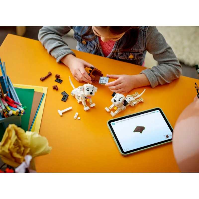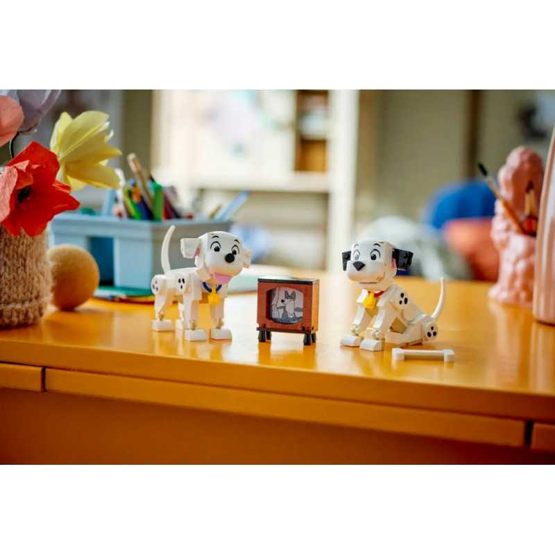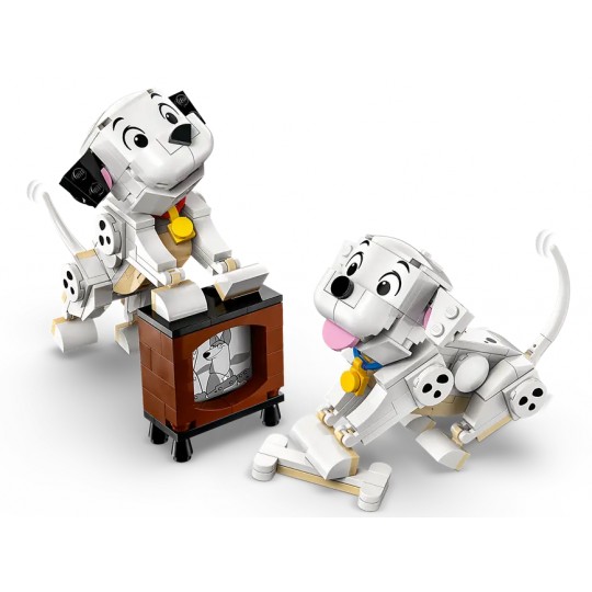 Podaruj dzieciom lub miłośnikom zwierząt w wieku od sześciu lat zestaw LEGOǀ Disney 101 dalmatyńczyków - Szczeniaczki Szczęściarz i Penny (43271). Zawiera on dwie postacie dalmatyńczyków z klasycznego filmu Disneya 101 dalmatyńczyków, a także kość z klocków do zabawy i mały telewizor. Postacie szczeniaczków LEGO Disney mają ruchome głowy, nogi i ogony i można je ustawiać w różnych pozach. Ten uroczy zestaw to świetny pomysł na prezent dla dziewczynek, chłopców i fanów filmów Disneya. Można go łączyć z innymi zestawami LEGO Disney z tej serii (sprzedawanymi osobno) i zabierać ze sobą na różne przygody. Ponadto dorośli fani Disneya, którzy uwielbiają pieski, mogą dołączyć do młodego fana i zbudować zaawansowany zestaw towarzyszący dla dorosłych (zestaw 101 dalmatyńczyków - Szczeniaczek, sprzedawany osobno). Dzięki aplikacji LEGO Builder dzieci mogą cieszyć się łatwym i intuicyjnym budowaniem. Mogą w niej przybliżać i obracać model w 3D, zapisywać zestawy i śledzić postępy. Zestaw zawiera 268 elementów.