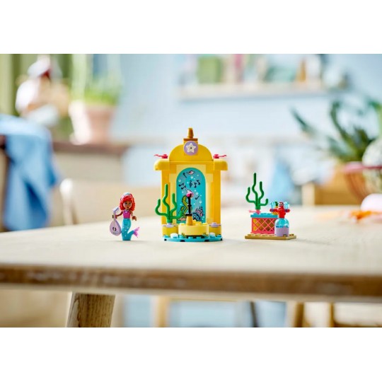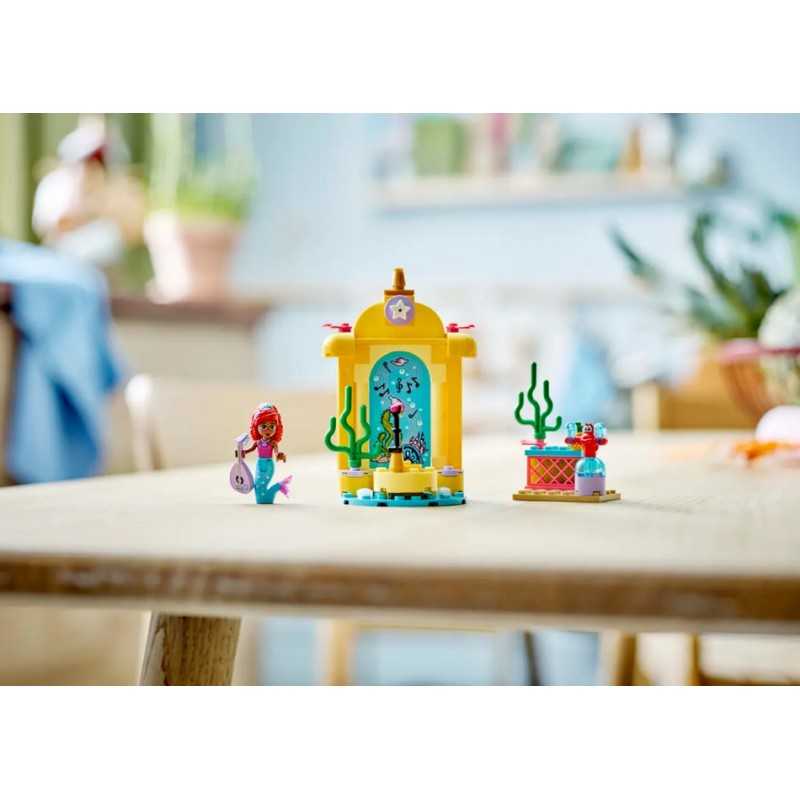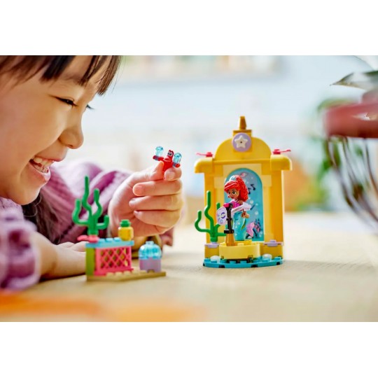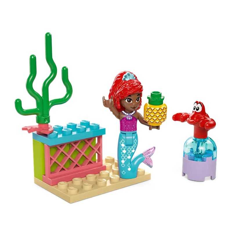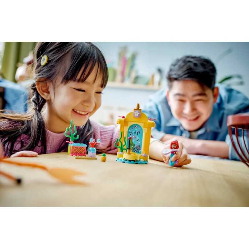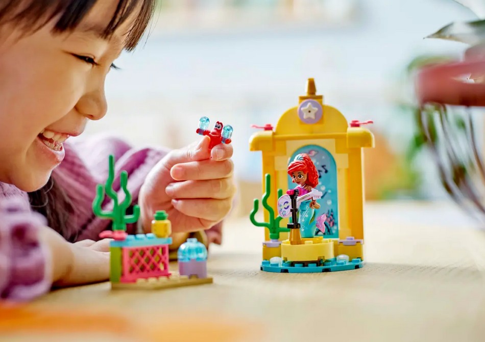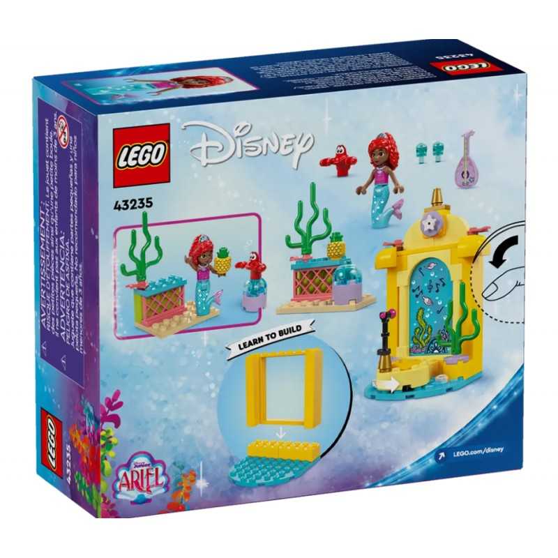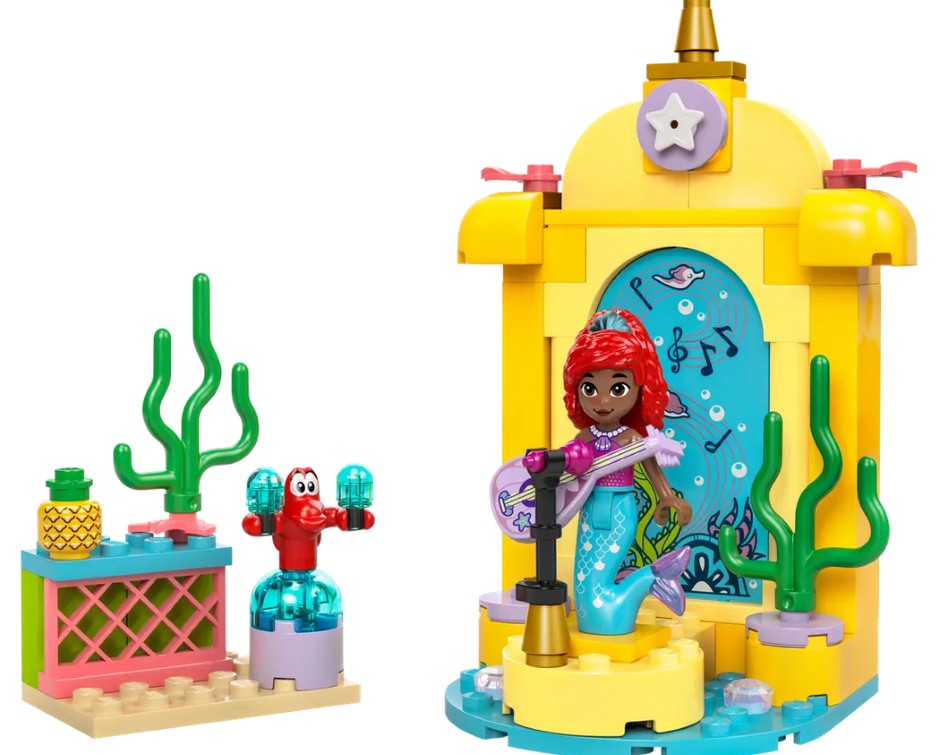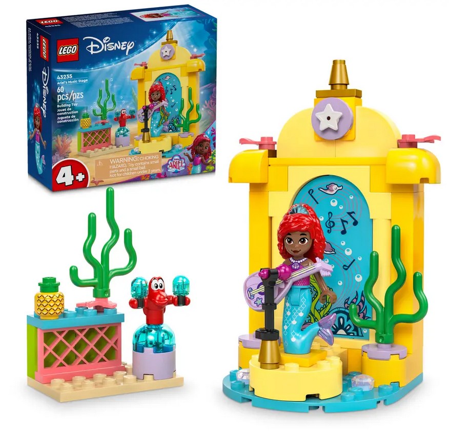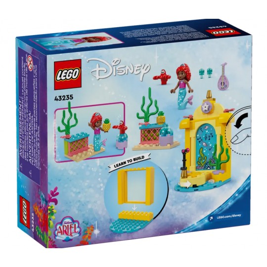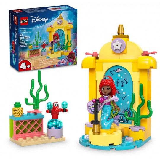 Podczas nauki budowania zestawu LEGO Disney Scena muzyczna Arielki (43235) na czterolatków i starsze dzieci czekają niesamowite występy i kreatywna zabawa. Zabawka z księżniczką Disneya została zaprojektowana tak, aby wspierać umiejętności rozwiązywania problemów i inspirować maluchy do twórczej zabawy. Zestaw zawiera minilaleczkę Arielki i figurkę Sebastiana LEGO Disney. Znajduje się w nim także obrotowa scena, stoisko z przekąskami i krzesłem oraz ciekawe akcesoria inspirujące do zabawy, w tym gitara, marakasy czy ananas. Klocek startowy ułatwia i przyspiesza budowanie, a intuicyjne instrukcje w formie kolorowego przewodnika z ilustracjami są idealne dla dzieci, które dopiero zaczynają naukę czytania. Ten fajny zestaw LEGO Disney 4+ jest idealny dla fanów Małej Syrenki. Można go zabrać ze sobą, by bawić się z przyjaciółmi lub rodziną.