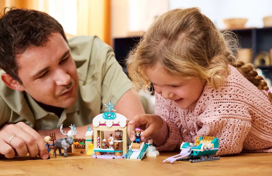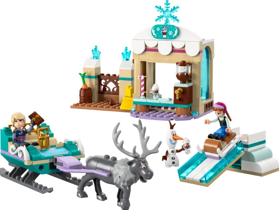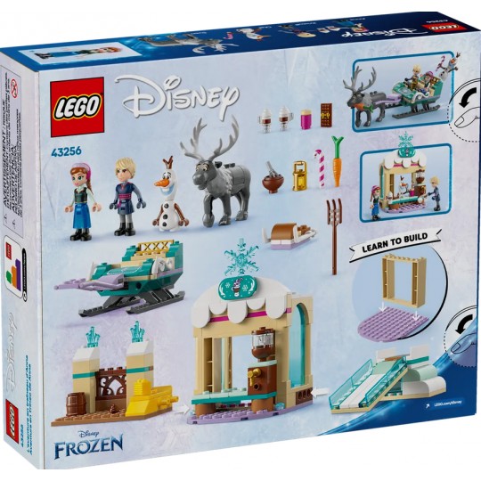 Czterolatki i starsze dzieci, które uwielbiają Krainę lodu Disneya, czeka mnóstwo zabawy i nauki budowania dzięki zestawowi LEGO Disney Przygoda na sankach Anny (43256). W zestawie znajduje się stoisko z gorącą czekoladą, stajnia, sanie, małe sanki, górka do zjeżdżania oraz liczne akcesoria. Zestaw zawiera także cztery znane postacie: minilaleczki LEGO ǀ Disney Anny i Kristoffa, figurkę bałwanka Olafa oraz figurkę LEGO Disney Svena. Ten zestaw LEGO to uroczy prezent urodzinowy dla małych fanów Krainy lodu, który pobudza wyobraźnię, rozwija pewność siebie i zachęca do wspólnej zabawy z dorosłymi. Dwa klocki startowe ułatwiają rozpoczęcie budowania, a każda torebka z klockami zawiera postać, co pozwala szybko zacząć zabawę i dokończyć model później. Model można także połączyć z innymi zestawami LEGO ǀ Disney (sprzedawanymi osobno). Do zestawu dołączono ilustrowane instrukcje dla dzieci uczących się czytać, a w aplikacji LEGO Builder dostępne są dodatkowe, intuicyjne narzędzia, które umożliwiają powiększanie i obracanie modeli w 3D oraz śledzenie postępów.