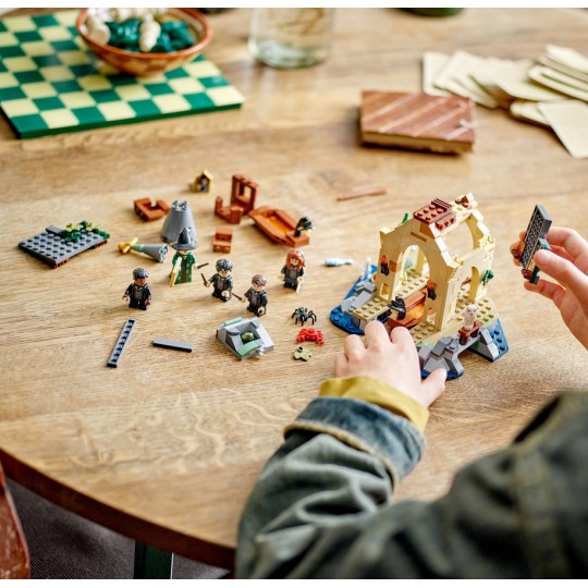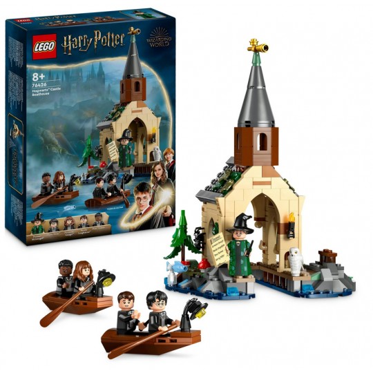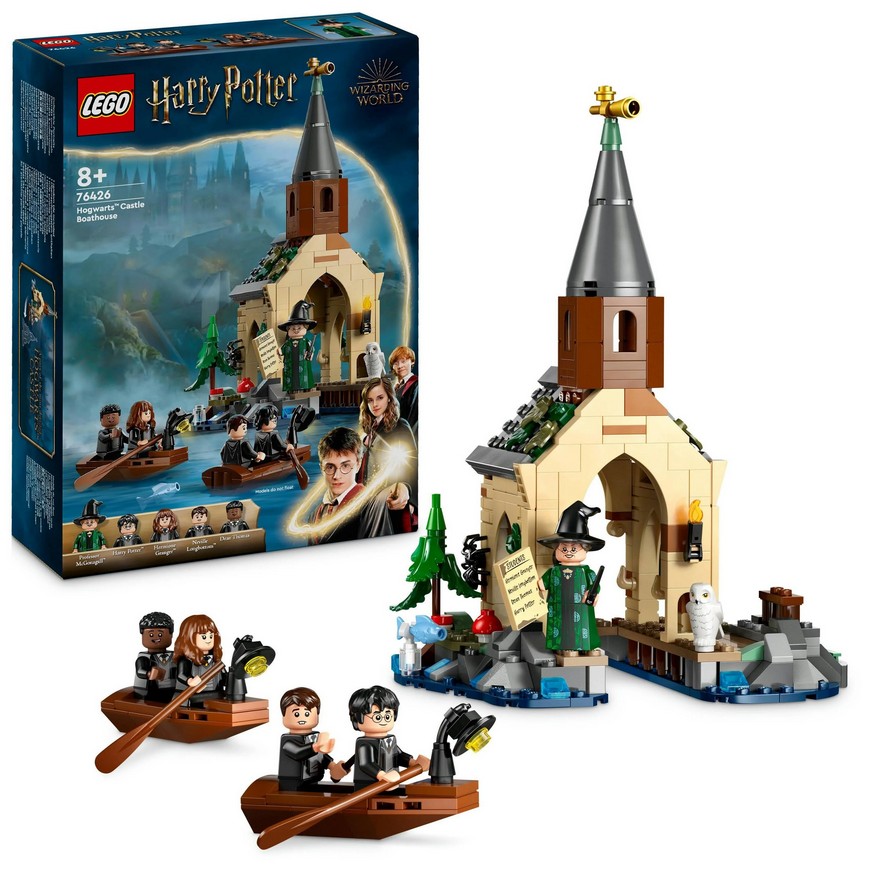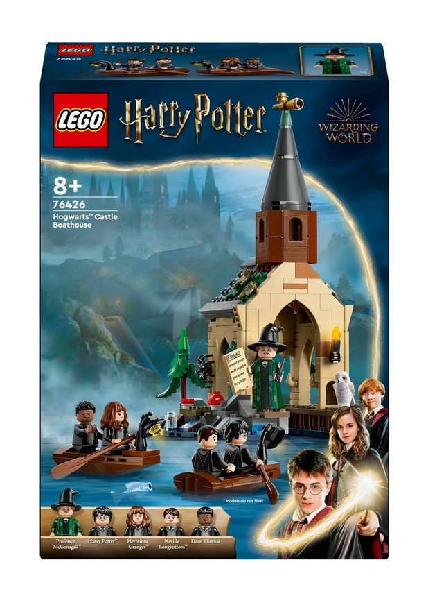 Przeżyj ponownie pamiętną scenę z filmu Harry Potter i kamień filozoficzny, w której Harry Potter i jego przyjaciele po raz pierwszy przybywają do domu na wodzie przy Hogwarcie (76426), dzięki tej fantastycznej zabawce konstrukcyjnej dla dzieci. Zawiera ona dwie łodzie do zbudowania, każda z miejscem na dwie minifigurki, przystań dla łodzi z miejscem do cumowania w środku, kryjówkę dla ropuchy Neville'a Longbottoma, Teodory, oraz jeden z 14 kolekcjonerskich portretów Hogwartu.Ten ciekawy i wciągający zestaw to wspaniały pomysł na magiczny prezent dla dzieci w wieku od ośmiu lat. Zawiera on siedem postaci LEGO Harry Potter, w tym minifigurkę profesor McGonagall ze specjalną ozdobą na ramieniu. Ten zestaw to pierwszy z nadchodzącej serii zestawów modułowych (sprzedawanych osobno), które można łączyć, aby stworzyć najbardziej szczegółową w historii scenę zamku Hogwart z klocków LEGO.Dzieci mogą cieszyć się łatwym i intuicyjnym budowaniem dzięki aplikacji LEGO Builder. Mogą w niej przybliżać i obracać modele w 3D, zapisywać zestawy i śledzić postępy.