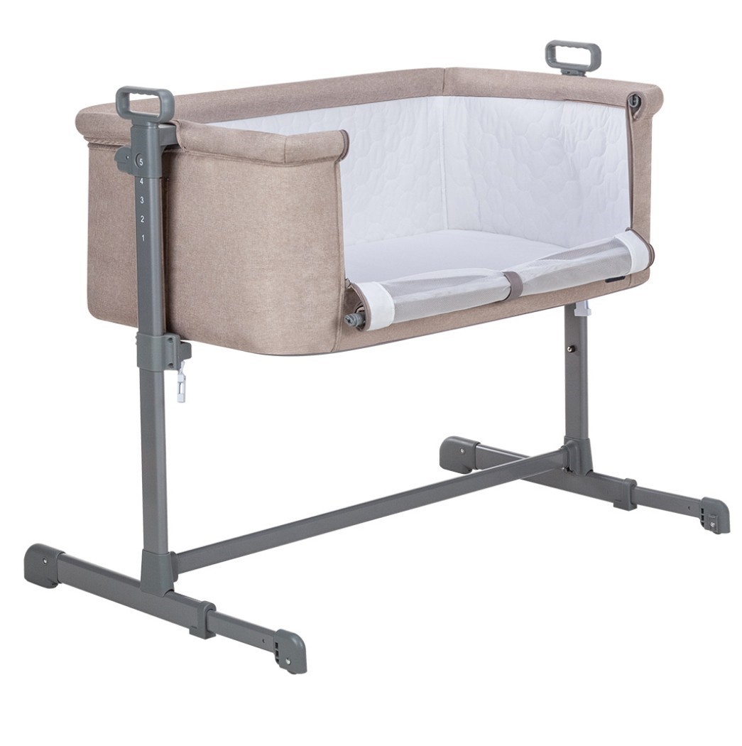 Dzięki przemyślanej konstrukcji łączy zalety tradycyjnego łóżeczka z możliwością montażu obok łóżka rodziców, co ułatwia opiekę nad dzieckiem w nocy.