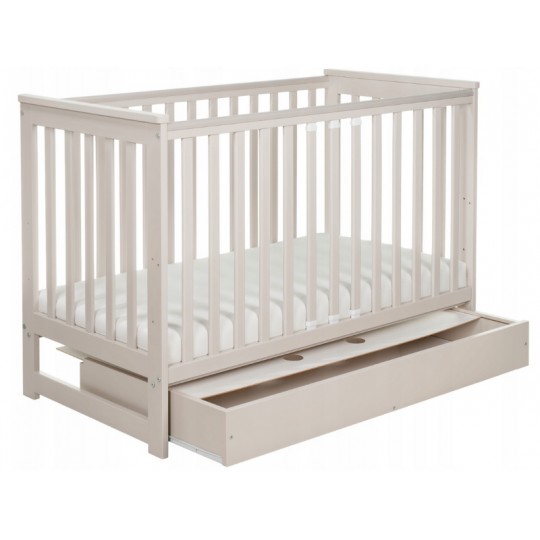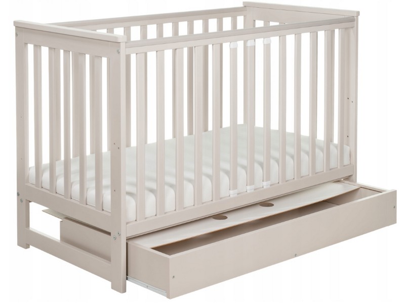 Pod łóżeczkiem znajduje się pojemna szuflada, która jest idealnym miejscem do przechowywania pościeli, kocyków, pieluszek czy zabawek. Pomaga utrzymać porządek w pokoju i sprawia, że wszystkie niezbędne akcesoria masz zawsze pod ręką.