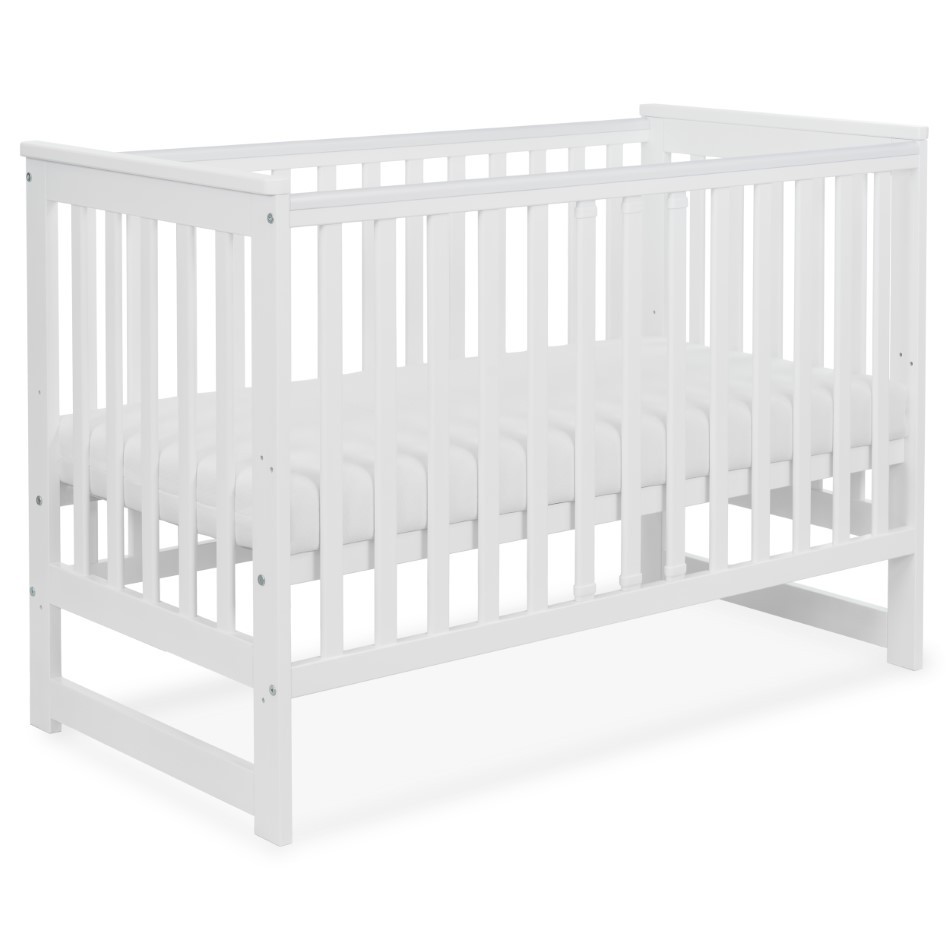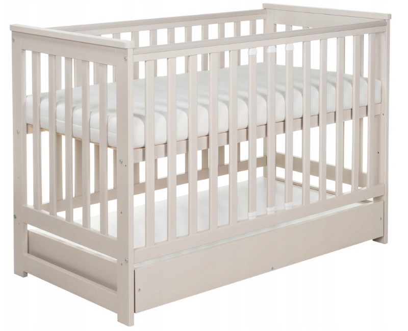 Łóżeczko oferuje 3-stopniową regulację wysokości materaca, co ułatwia opiekę nad noworodkiem i zapewnia bezpieczeństwo starszemu, wstającemu już dziecku. Zostało wykonane z bezpiecznych materiałów i pomalowane nietoksycznymi farbami, spełniając rygorystyczne europejskie normy.