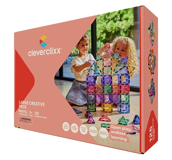 Z tym 125-elementowym dużym pakietem kreatywnym Cleverclixx radość budowania nigdy się nie kończy. Bawiąc się i tworząc nowe konstrukcje, Twoje dziecko będzie poznawać różne kształty i kolory. Ten zestaw świetnie się sprawdzi, gdy będziecie mieli chęć na wspólne, rodzinne budowanie, ale także wtedy, gdy Twoje dziecko zechce stworzyć większe budowle lub bardziej skomplikowane konstrukcje.