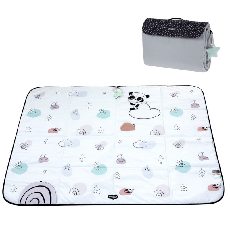 Motoryka - Duży obszar do zabawy pozwala dziecku na rozciąganie swojego ciała, eksperymentowanie z ruchem oraz turlaniem się, wydłużaniem czasu na brzuszku czy siedzeniem ciesząc się wieloma aktywizującymi elementami maty.