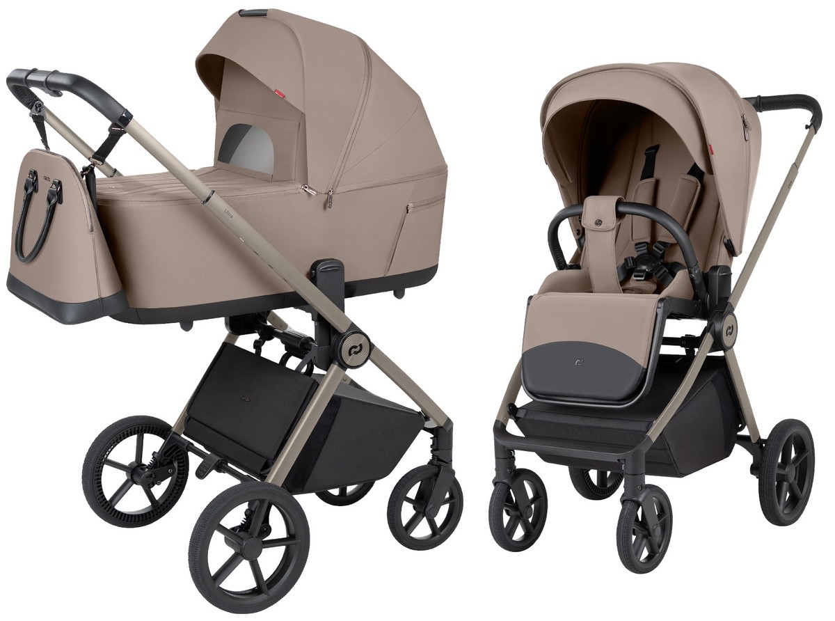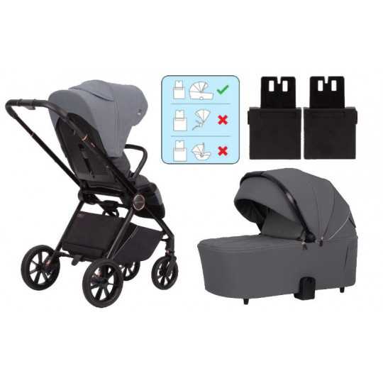 Wózek spacerowy montowany na stelażu zarówno w kierunku jazdy tak i „twarzą do mamy”. Kompaktowo składa się wraz z stelażem wózka w dowolnym kierunku jego montażu na stelażu. Oparcie i podnóżek jednostki siedzącej posiadają 3 pozycje odchylenia: "siedząca", "półleżąca", "leżąca". Zmieniają one swoje położenie niezależnie od siebie. Spacerówka z zestawu posiada niską wagę, możliwość regulacji wysokości oparcia, 5punktowe pasy bezpieczeństwa oraz jest składana razem z stelażem przodem lub tyłem do kierunku jazdy. W wyposażeniu znajdziemy również pokrowiec na nóżki, folię przeciwdeszczową oraz moskitierę. Daszek spacerówki zmienia swoją wysokość i blokuje się w jednej z trzech pozycji. Przycisk blokady znajduje się po zewnętrznej stronie oparcia. Oparcie wykonane jest z trwałego, hipoalergicznego tworzywa sztucznego i posiada funkcję przepływu powietrza.Bardzo praktyczna i lekka spacerówka o wadze ok. 10kg z maksymalnym udźwigiem do 22kg - idealna starczy do końca wózkowania!