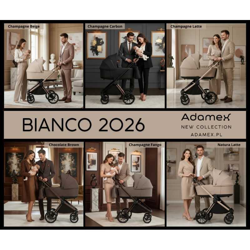 Adamex BIANCO to wszechstronny wózek głęboko-spacerowy, który łączy komfort, bezpieczeństwo i wygodę użytkowania. Sprawdzi się zarówno podczas krótkich spacerów po mieście, jak i dłuższych wycieczek. Dzięki solidnej konstrukcji, nowoczesnym rozwiązaniom i bogatemu wyposażeniu stanowi inwestycję na długi czas, zapewniając dziecku wygodę, a rodzicom spokój i łatwość obsługi.
