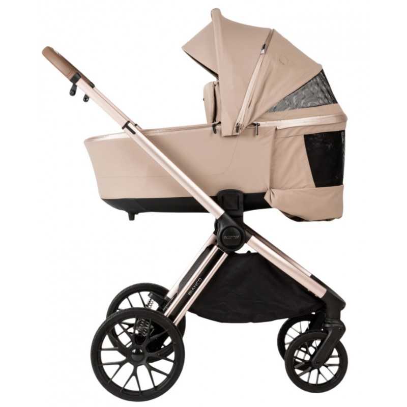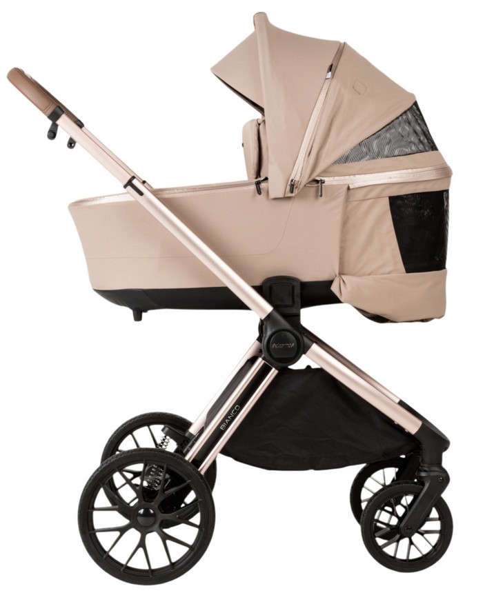 Model BIANCO charakteryzuje się nowoczesnym, eleganckim wyglądem. Wysokiej jakości tkaniny, staranne wykończenie oraz modne kolory sprawiają, że wózek prezentuje się bardzo stylowo. To doskonały wybór dla rodziców, którzy cenią zarówno funkcjonalność, jak i estetykę.
