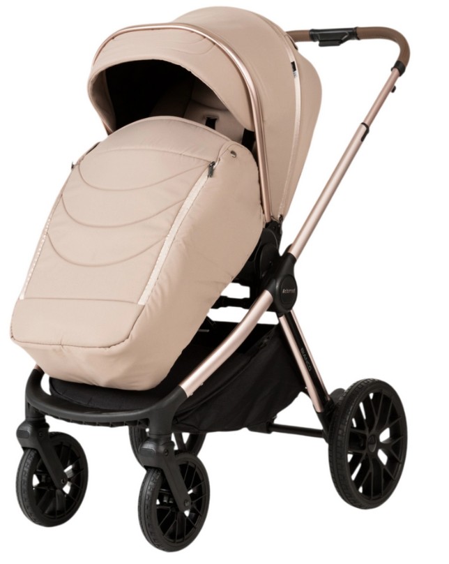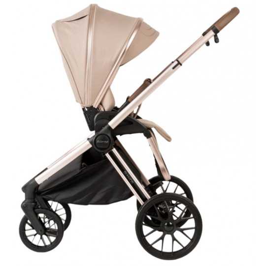 Po okresie gondoli wózek można łatwo przekształcić w wersję spacerową. Siedzisko spacerowe można montować przodem lub tyłem do kierunku jazdy, co daje rodzicom możliwość utrzymywania kontaktu wzrokowego z dzieckiem lub pozwala maluchowi odkrywać świat. Oparcie jest regulowane – od pozycji siedzącej aż do leżącej – dzięki czemu dziecko może wygodnie odpocząć podczas spaceru. Regulowany podnóżek oraz pięciopunktowe pasy bezpieczeństwa zapewniają stabilność i wygodę.