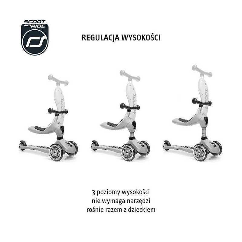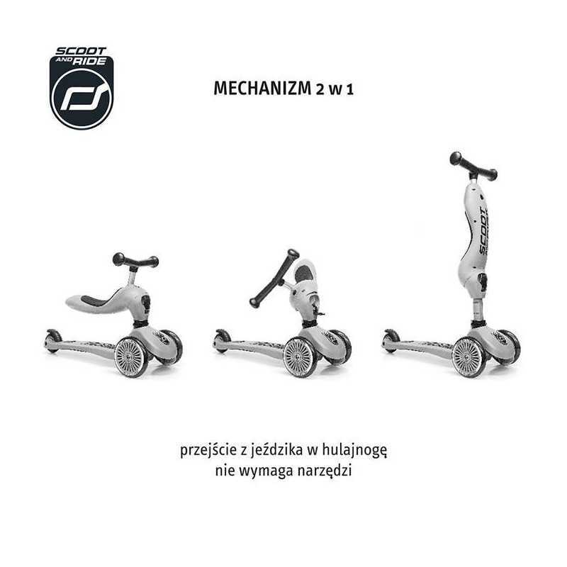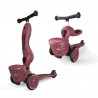 Bez używania narzędzi, za pomocą jednego guzika można w kilka sekund zamienić pojazd w hulajnogę na 3 kołach – obrócone siedzisko staje się jej przednią ramą. Wystarczy jeszcze przenieść kierownicę (montowana na klik) i gotowe! Teraz także starszak może rozpocząć swoją scaterską przygodę.