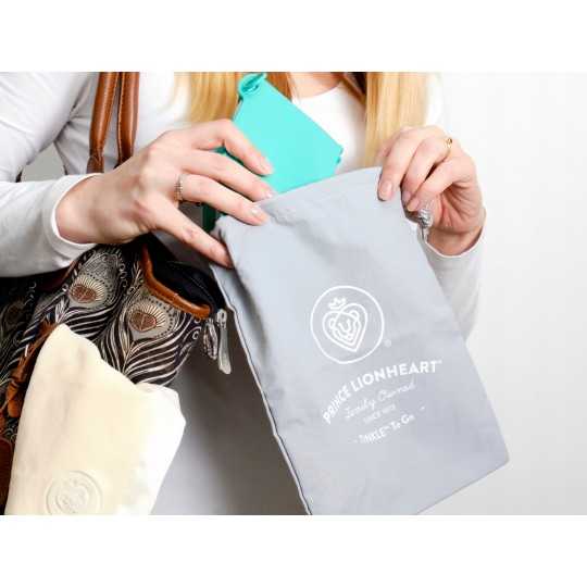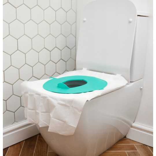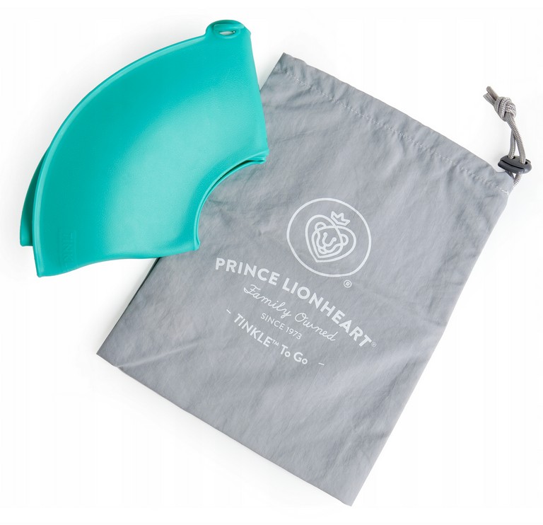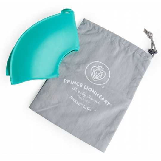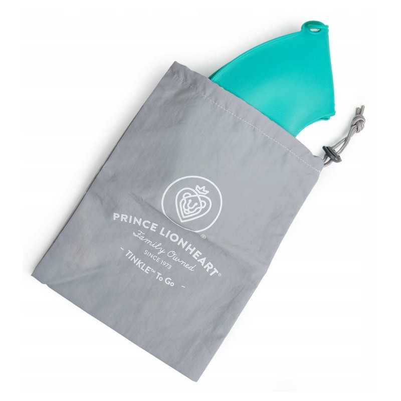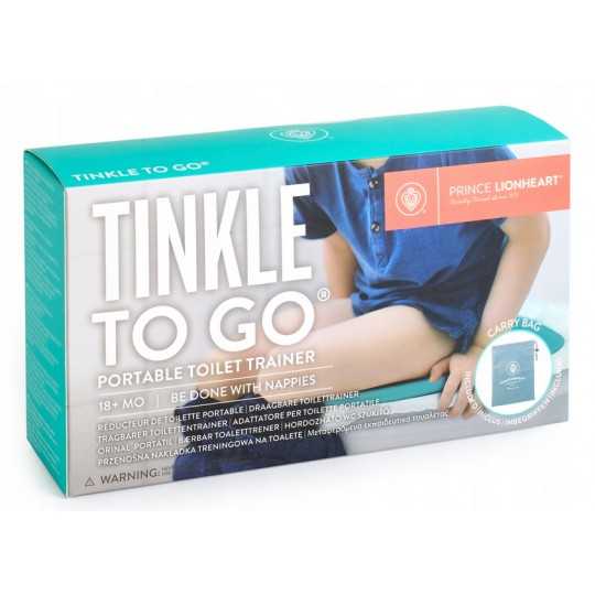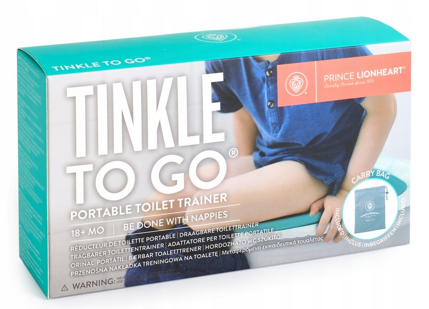 Tinkle To Go to wykonana ze specjalnego tworzywa turystyczna nakładka toaletowa, którą łatwo można składać i używać w podróży. Dzięki Tinkle To Go zmniejszysz swój i dziecka stres związany z korzystaniem z publicznych toalet. Korzystając z turystycznej nakładki na toaletę ograniczasz kontakt dłoni oraz nóg z używaną przez dziesiątki innych osób powierzchnią publicznych toalet. To czyni tę nakładkę na WC niezbędną częścią ekwipunku przy każdej krótszej i dłuższej wyprawie. Podkładkę Prince Lionheart wyróżnia to, że na zewnętrznej powierzchni na której dziecko siada nie ma żadnych łączeń, które mogłyby narazić dziecko na przytrzaśniecie skóry. Nakładka nie ma też żadnych przyssawek, aby łatwiej można ją zdjąć z toalety. Rozmiar nakładki na sedes jest uniwersalny, czyli nakładka powinna pasować do większości domowych i publicznych toalet. Korzystanie z nakładki jest bardzo proste. Wystarczy na toaletę położyć papierową podkładkę (która jest dołączona do zestawu), a następnie na papierową podkładkę nałożyć nakładkę toaletową. Korzystanie z podkładek papierowych nie jest obowiązkowe, ale znacznie redukuje bezpośredni kontakt nakładki z powierzchnią toalety - dzięki czemu w dalekiej podróży łatwiej ją utrzymać w czystości przez dłuższy czas. Jako jedyna miękka nakładka turystyczna ma z przodu wbudowane zabezpieczenie przed pryskaniem. Po zakończeniu używania podkładki można ją swobodnie zdjąć z toalety, w razie potrzeby przepłukać pod kranem oraz schować do specjalnie zaprojektowanej w tym celu torby i zamknąć. Torbę na nakładkę można prać. Jest ona takiej wielkości, że mieści się swobodnie w torebce lub małym plecaku.