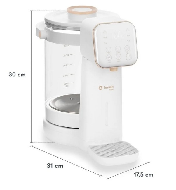 Lionelo Babypresto 2.0 podgrzewacz do wody z lampą UV i trybem smart 100°C wykorzystuje przepływową lampę UV, która usuwa bakterie i grzyby bez potrzeby stosowania dodatkowych filtrów. To podgrzewacz do wody dla niemowląt z funkcją UV, który upraszcza codzienną rutynę i skraca proces przygotowania mleka. Tryb smart automatycznie podgrzewa wodę do 100°C i usuwa chlor w jednym cyklu – bez dodatkowych etapów gotowania.