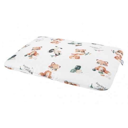 Płaska poduszka wykonana jest z wysokogatunkowej 100% przędzy bambusowej. Bambus ze względu na swe właściwości będzie idealnym rozwiązaniem dla noworodków oraz alergików. Posiada właściwości antyalergiczne, antybakteryjne, antygrzybiczne oraz samosterylizujące. Ma bardzo dobrą absorpcje wody, dużo lepszą niż bawełna. Bardzo szybko schnie! Chroni przed promieniami UV oraz posiada właściwości termoregulujące - utrzymuje temperaturę o 2 stopnie niższą niż temperatura otoczenia. Środek poduszki wypełniony jest antyalergiczną włókniną wysokopuszystą silikonową - zapewnia ona dziecku ciepło oraz wygodę podczas użytkowania. Poduszka idealnie sprawdza się do łóżeczka, na popołudniową drzemkę w przedszkolu, a także jako ulubiona poduszka na wszelkie wyjazdy. Produkty Bonjour Cherie są szyte ręcznie w Polsce z najwyższą starannością i dbałością o szczegóły, z tkanin najwyższej jakości dając długoletnią przyjemność z użytkowania. Kołderkę można skompletować z różnymi produktami marki Bonjour Cherie tworząc niepowtarzalną, bajecznie kolorową aranżację wózka, czy też pokoiku Twojego Maluszka. Doskonale też sprawdza się w formie stylowego prezentu dla dziecka, na baby shower i każdą inną miłą okazję. Wypełnienie jest wszywane do tkanin zewnętrznych, dzięki temu nie przemieszcza się podczas użytkowania i w praniu. Bambus, nadruk i włóknina posiadają Certyfikat OEKO-TEX 100 klasa I. Zdjęcie może odbiegać kolorystycznie od wyglądu rzeczywistego produktu, z uwagi na ustawienia monitora. Produkt należy stosować pod opieką rodzica. Zaleca się pranie przed pierwszym użyciem. W wyniku intensywnego użytkowania i częstego prania produkty bambusowe mogą ulec naturalnemu zużyciu - tkanina może się zaciągnąć lub ulegać zmechaceniu. Tego typu zużycie nie stanowi podstawy do reklamacji.