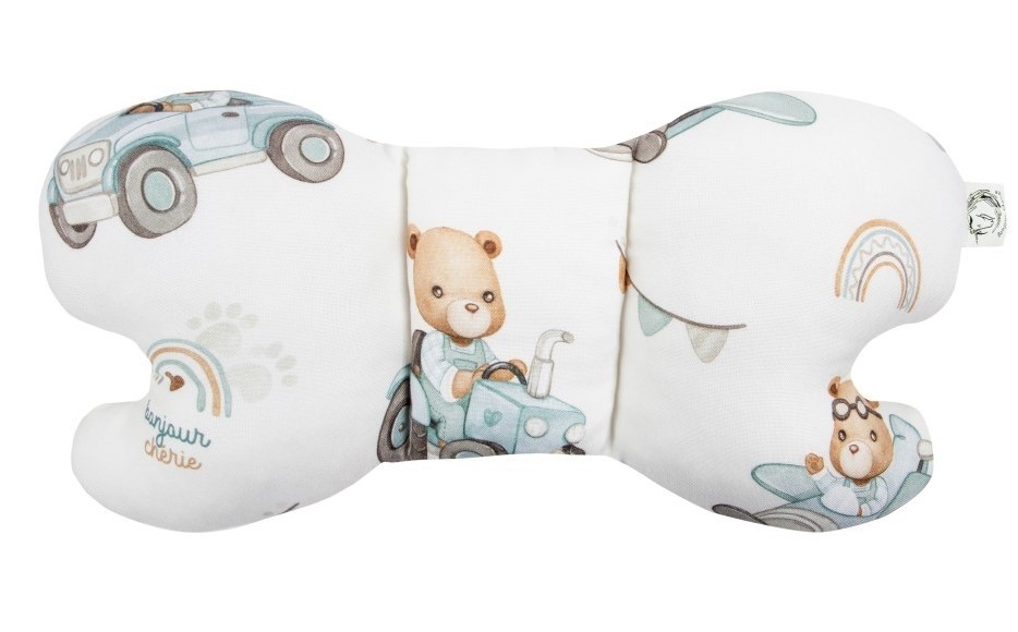 Poduszka Motylek wykonana jest z wysokogatunkowej 100% przędzy bambusowej. Bambus ze względu na swe właściwości będzie idealnym rozwiązaniem dla noworodków i alergików. Posiada właściwości antyalergiczne,antybakteryjne, antygrzybiczne oraz samosterylizujące się. Ma bardzo dobrą absorpcje wody, dużo lepszą niż bawełna. Bardzo szybko schnie! Chroni przed promieniami UV oraz posiada właściwości termoregulujące- utrzymuje temperaturę o 2 stopnie niższą niż temperatura otoczenia. Poduszka motylek polecana dla maluszka . Posiada specjalny kształt dzięki czemu dziecko nie jest narażone na wstrząsy podczas spacerów po nierównej powierzchni. Poduszka dopasowuje się, podczas odpoczynku, do pozycji dziecka co powoduje beztroski sen i komfort Maluszka. Poduszkę możemy zastosować w wózku głębokim, spacerówce, łóżeczku. Poduszka wykonana jest z bambusa, po bokach wypełniona jest antyalergiczną kulką silikonową.Poduszka będzie doskonała podczas upalnych dni, zapobiega przegrzewaniu się i poceniu się dziecka. Produkty Bonjour Cherie są szyte ręcznie w Polsce z najwyższą starannością i dbałością o szczegóły, z tkanin najwyższej jakości dając długoletnią przyjemność z użytkowania. Poduszkę można skompletować z różnymi produktami marki Bonjour Cherie tworząc niepowtarzalną, bajecznie kolorową aranżację wózka, czy też pokoiku Twojego Maluszka. Doskonale też sprawdza się w formie stylowego prezentu dla dziecka, na baby shower i każdą inną miłą okazję. Bambus i nadruk posiadają Certyfikat OEKO-TEX 100 klasa I.Zdjęcie może odbiegać kolorystycznie od wyglądu rzeczywistego produktu, z uwagi na ustawienia monitora. Produkt należy stosować pod opieką rodzica. Zaleca się pranie przed pierwszym użyciem. W wyniku intensywnego użytkowania i częstego prania produkty bambusowe mogą ulec naturalnemu zużyciu - tkanina może się zaciągnąć lub ulegać zmechaceniu. Tego typu zużycie nie stanowi podstawy do reklamacji. Wymiary: 22x37 cm. Skład: 100% cv bambus. Wypełnienie: 100% poliester. Kurczliwość: +/- 3%