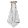 Kocyk do fotelika samochodowego wykonany jest z wysokogatunkowej 100% przędzy bambusowej, który zapewni przyjemne oraz bezpieczne podróże samochodem. Kocyk w formie otulacza zapewni idealne rozwiązanie na chłodniejsze dni, gdzie zawijasz dziecko kiedy jest zimno. W każdej chwili można rozwinąć kocyk kiedy jest już ciepło i tym samym kontrolujemy dziecko przed przegrzaniem czy też spoceniem. Nasz kocyk posiada otwory na pasy 3-punktowe fotelika, które pozwalają na ich zapięcie i bezpieczne przewożenie dziecka. Otwory na pasy są dostosowane do fotelika samochodowego 0-13kg (grupa 0/0+). Kapturek wykonany jest z mięciutkiego pluszu minky, który doskonale chroni przed wiatrem. Środek kocyka wypełniony jest antyalergiczną włókniną wysokopuszystą silikonową. Zapewnia ona dziecku ciepło oraz wygodę podczas użytkowania. Kołderka idealnie sprawdza się od pierwszych dni życia, do łóżeczka, na popołudniową drzemkę, do wózka,nosidełka a także jako ulubiona kołderka na wszelkie wyjazdy lub jako mięciutka mata dla dziecka. Bambus ze względu na swe właściwości będzie idealnym rozwiązaniem dla noworodków i alergików. Posiada właściwości antyalergiczne,antybakteryjne, antygrzybiczne oraz samosterylizujące się. Ma bardzo dobrą absorpcje wody, dużo lepszą niż bawełna. Bardzo szybko schnie! Chroni przed promieniami UV oraz posiada właściwości termoregulujące - utrzymuje temperaturę o 2 stopnie niższą niż temperatura otoczenia. Produkty Bonjour Cherie są szyte ręcznie w Polsce z najwyższą starannością i dbałością o szczegóły, z tkanin najwyższej jakości dając długoletnią przyjemność z użytkowania. Kołderkę można skompletować z różnymi produktami marki Bonjour Cherie tworząc niepowtarzalną, bajecznie kolorową aranżację wózka, czy też pokoiku Twojego Maluszka. Doskonale też sprawdza się w formie stylowego prezentu dla dziecka, na baby shower i każdą inną miłą okazję. Wypełnienie jest wszywane do tkanin zewnętrznych, dzięki temu nie przemieszcza się podczas użytkowania i w praniu. Bambus, nadruk i włóknina posiadają Certyfikat OEKO-TEX 100 klasa I. Zdjęcie może odbiegać kolorystycznie od wyglądu rzeczywistego produktu, z uwagi na ustawienia monitora. Produkt należy stosować pod opieką rodzica. Zaleca się pranie przed pierwszym użyciem. W wyniku intensywnego użytkowania i częstego prania produkty bambusowe mogą ulec naturalnemu zużyciu - tkanina może się zaciągnąć lub ulegać zmechaceniu. Tego typu zużycie nie stanowi podstawy do reklamacji.