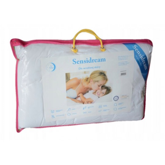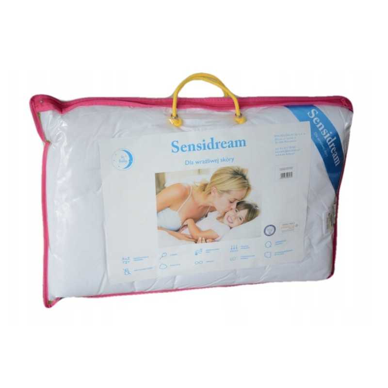 Poduszka medyczna Sensidream o właściwościach antyalergicznych dzięki zastosowaniu najwyższej jakości, bezpiecznych surowców. Poduszki dla dzieci o wrażliwej skórze ze skłonnościami do alergii. Produkty Sensidream nie zawierają sztucznych barwników, szkodliwych substancji chemicznych oraz metali ciężkich. Poduszki pokryte są oddychającą tkaniną z delikatnych mikrowłókien z formułą MIKROTOUCH dla zapewnienia aksamitnej miękkości nawet dla najbardziej wrażliwej skóry. Wyjątkowo lekkie i otulające kołdry nie ograniczają ruchów śpiącego. Wygodne i trwałe poduszki niezwykle długo zachowują swój pierwotny kształt. Produkty certyfikowane wg Oeko-Tex Standard 100 kl. I – bezpieczne dla niemowląt i dzieci do lat 3. Tkanina: Mikrofaza – oddychająca tkanina z delikatnych mikrowłókien z formułą MICROTOUCH dla zapewnienia aksamitnej miękkości nawet dla najbardziej wrażliwej skóry. Wypełnienie 250g Fillball – hypoalergiczny granulat poliestrowy silikonowany wyprodukowany ze specjalnie wyselekcjonowanych włókien zapewniających optymalny komfort użytkowania.
