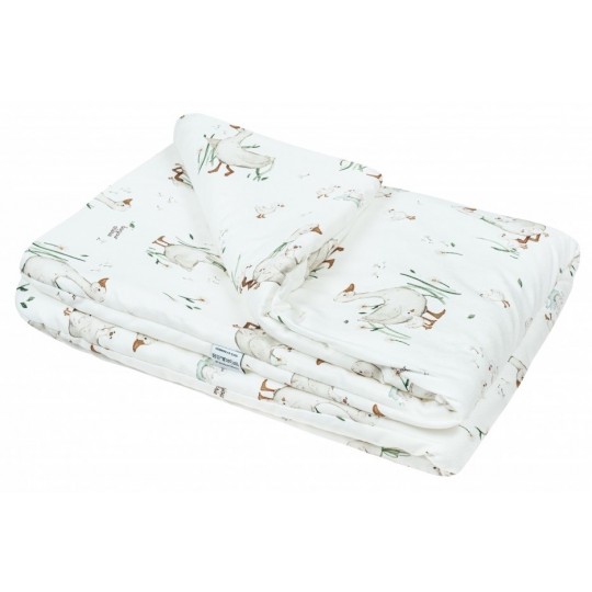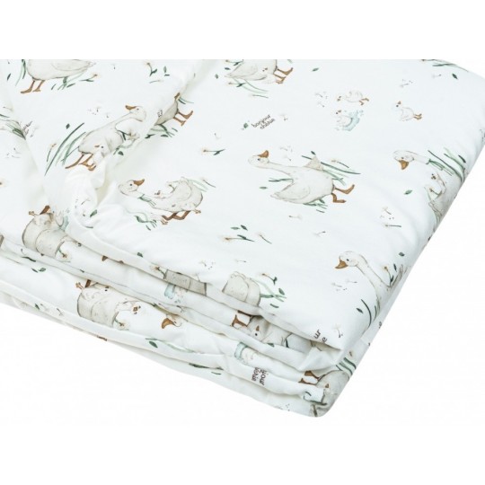 Kołderka wykonana jest z wysokogatunkowej 100% przędzy bambusowej. Bambus ze względu na swe właściwości będzie idealnym rozwiązaniem dla noworodków i alergików. Posiada właściwości antyalergiczne,antybakteryjne, antygrzybiczne oraz samosterylizujące się. Ma bardzo dobrą absorpcje wody, dużo lepszą niż bawełna. Bardzo szybko schnie! Chroni przed promieniami UV oraz posiada właściwości termoregulujące - utrzymuje temperaturę o 2 stopnie niższą niż temperatura otoczenia. Środek kołderki wypełniony jest antyalergiczną włókniną wysokopuszystą silikonową. Zapewnia ona dziecku ciepło oraz wygodę podczas użytkowania. Kołderka idealnie sprawdza się od pierwszych dni życia, do łóżeczka, na popołudniową drzemkę, do wózka,nosidełka a także jako ulubiona kołderka na wszelkie wyjazdy lub jako mięciutka mata dla dziecka. Produkty Bonjour Cherie są szyte ręcznie w Polsce z najwyższą starannością i dbałością o szczegóły, z tkanin najwyższej jakości dając długoletnią przyjemność z użytkowania. Kołderkę można skompletować z różnymi produktami marki Bonjour Cherie tworząc niepowtarzalną, bajecznie kolorową aranżację wózka, czy też pokoiku Twojego Maluszka. Doskonale też sprawdza się w formie stylowego prezentu dla dziecka, na baby shower i każdą inną miłą okazję.Wypełnienie jest wszywane do tkanin zewnętrznych, dzięki temu nie przemieszcza się podczas użytkowania i w praniu. Bambus, nadruk i włóknina posiadają Certyfikat OEKO-TEX 100 klasa I. Zdjęcie może odbiegać kolorystycznie od wyglądu rzeczywistego produktu, z uwagi na ustawienia monitora. Produkt należy stosować pod opieką rodzica. Zaleca się pranie przed pierwszym użyciem. W wyniku intensywnego użytkowania i częstego prania produkty bambusowe mogą ulec naturalnemu zużyciu - tkanina może się zaciągnąć lub ulegać zmechaceniu. Tego typu zużycie nie stanowi podstawy do reklamacji.