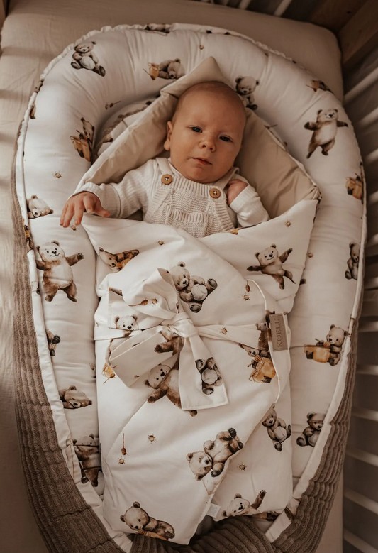 Szyty ręcznie z wysokiej jakości polskich tkanin bawełnianych z nadrukiem cyfrowym. Środek produktu wypełniony jest certyfikowaną, antyalergiczną włókniną silikonową pierwszego gatunku. Dzięki zastosowaniu wiązania, w naszych rożkach masz możliwość dopasowania go do swojego maluszka zapewniając mu poczucie bezpieczeństwa. Nasz rożek można wiązać obustronnie. Rożek jest starannie wykończony. Jest on niezbędny w pierwszych tygodniach życia twojego dziecka, stanowiąc podstawowy element wyprawki niemowlęcej. Otula maluszka, zapewniając mu ciepło. Rożek jest niezastąpiony w szpitalu, domu czy też podczas spaceru w wózku. Przydatny również w późniejszym okresie jako kołderka, kocyk lub mata do leżakowania na brzuszku. Produkty szyte są w 100% ręcznie w Polsce, dzięki czemu na każdym etapie produkcji dbamy o wszystkie detale. Nasze produkty nie zawierają twardych elementów i są bezpieczne dla niemowląt, wykonane są z miękkich i przyjaznych tkanin. Wszystkie wykorzystane materiały posiadają certyfikat STANDARD 100 by OEKO-TEX.