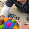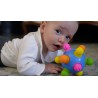 Sensoryczna Kula to wielowymiarowa piłka, która będzie rosnąć wraz z rozwojem Twojego dziecka. Kula ma ruchome silikonowe elementy - kuleczki - do wciskania, wyciągania, żucia, ssania. Kuleczki mają różnorodną fakturę i wyrazistą kolorystykę, aby jeszcze lepiej stymulować dziecko podczas zabawy. Zabawka jest także zabawką antystresową dla starych dzieci, wciskanie kuleczek i manipulowanie nim wycisza pobudzone lub mające problemy z koncentracją dzieci.