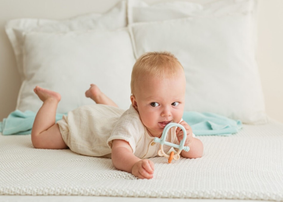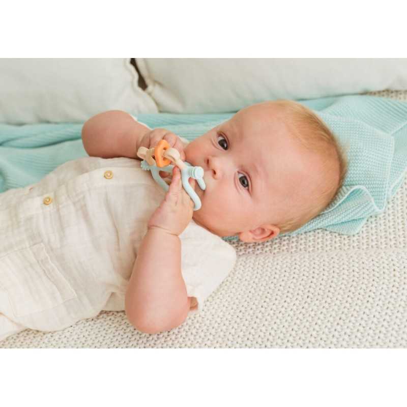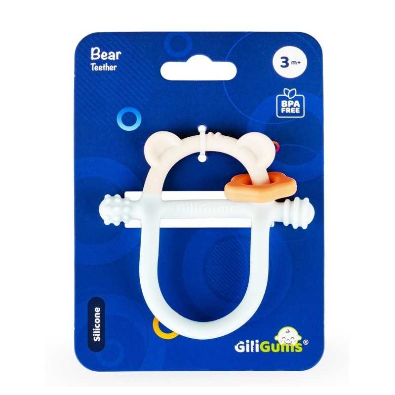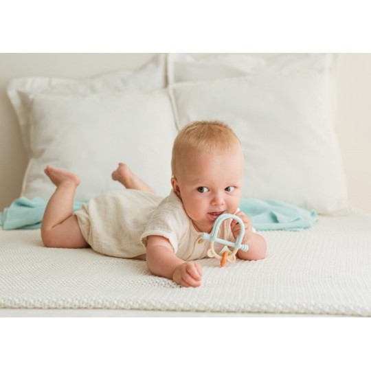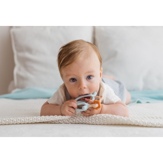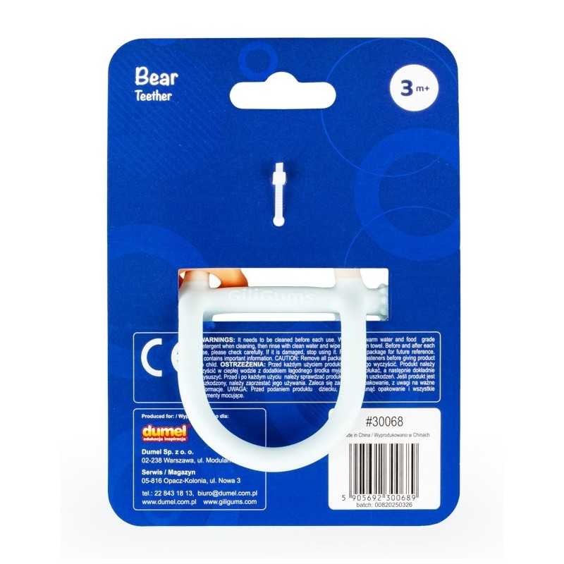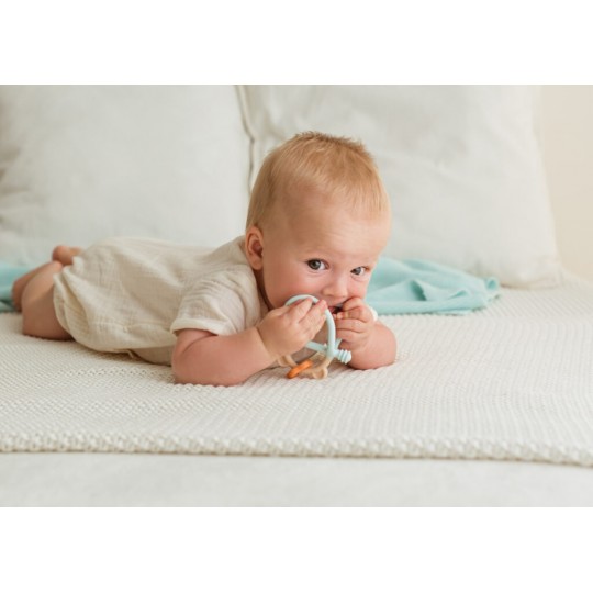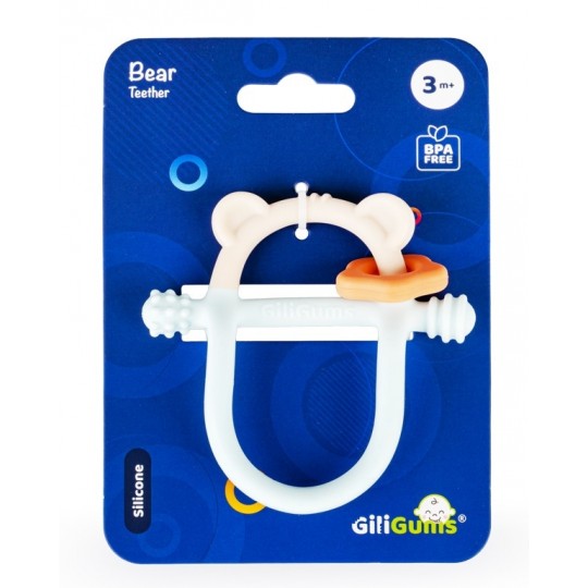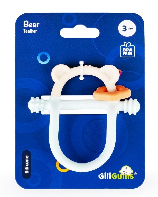 Z pastelowym misiem ząbkowanie to żadne wyzwanie! Gryzaczek posiada wypustki, które podczas gryzienia będą delikatnie masować obolałe dziąsła malucha. Kształt gryzaczka został zaprojektowany z myślą o najmłodszych. Znajdziemy tu miejsce na rączkę dzidziusia oraz poprzeczny element, za który bobas może chwytać zabawkę. Gryzak wykonany został z silikonu, dzięki czemu bez trudu go wyczyścisz. Produkt przeznaczony jest dla dzieci od 3 miesiąca życia.