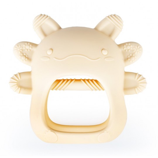 Ten uroczy stworek to super pomocnik w ząbkowaniu! Posiada wypustki, które podczas gryzienia będą delikatnie masować dziąsła maluszka, przynosząc mu tym samym ulgę. Kształt tego innowacyjnego gryzaka pozwala na włożenie do środka rączki, gdzie ukryty jest poprzeczny, fakturowany uchwyt. Ta nieregularna powierzchnia zapobiega niekontrolowanemu wyślizgiwaniu się zabawki z ręki malucha. Gryzak wykonany jest z silikonu, dzięki czemu bez trudu można go wyczyścić. Produkt przeznaczony jest dla dzieci od 3 miesiąca życia.